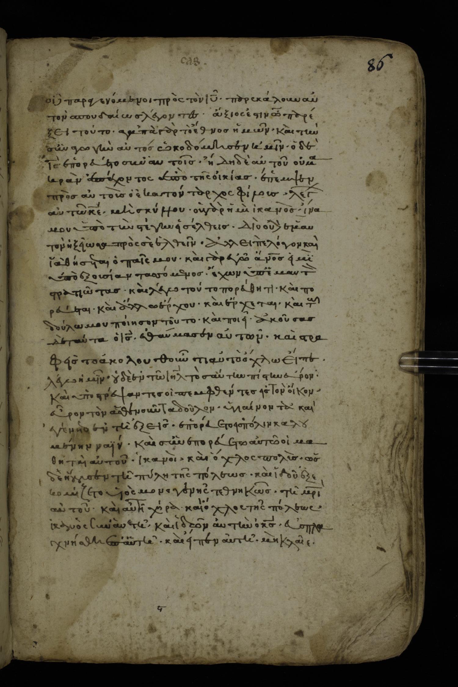 Fourteenth century minuscule of the Gospels on paper; 161 leaves, 1 column, 25-30 lines per column. Images were taken at the National Library of Greece in Athens.