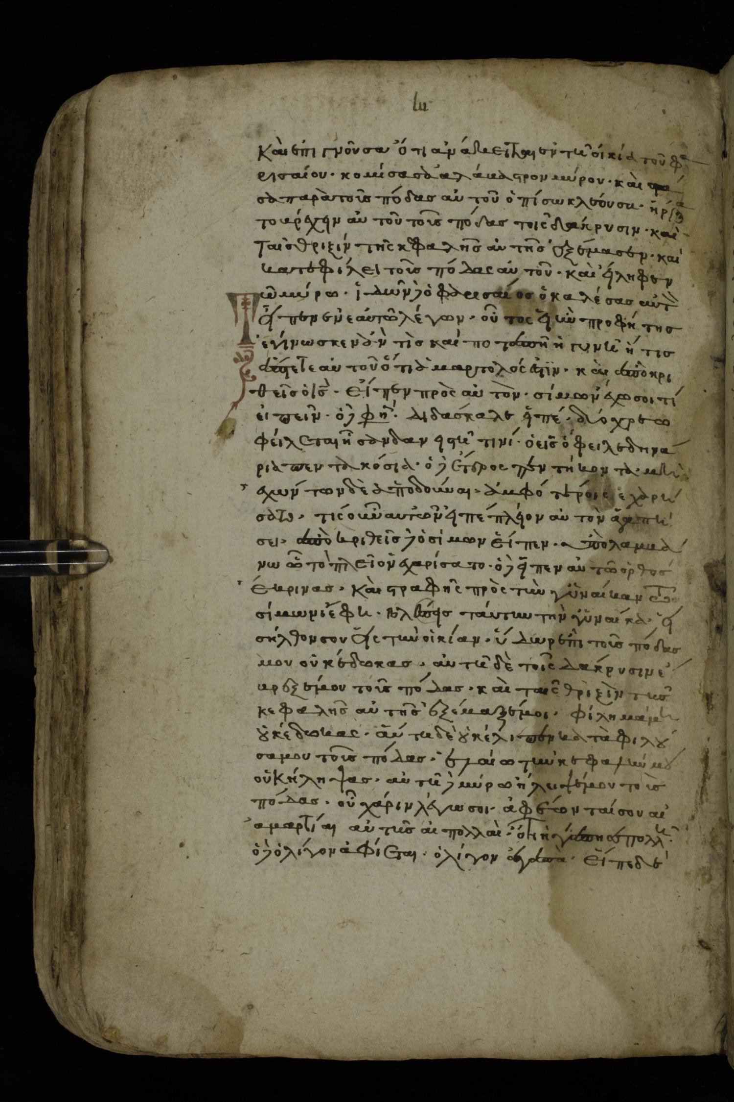 Fourteenth century minuscule of the Gospels on paper; 161 leaves, 1 column, 25-30 lines per column. Images were taken at the National Library of Greece in Athens.