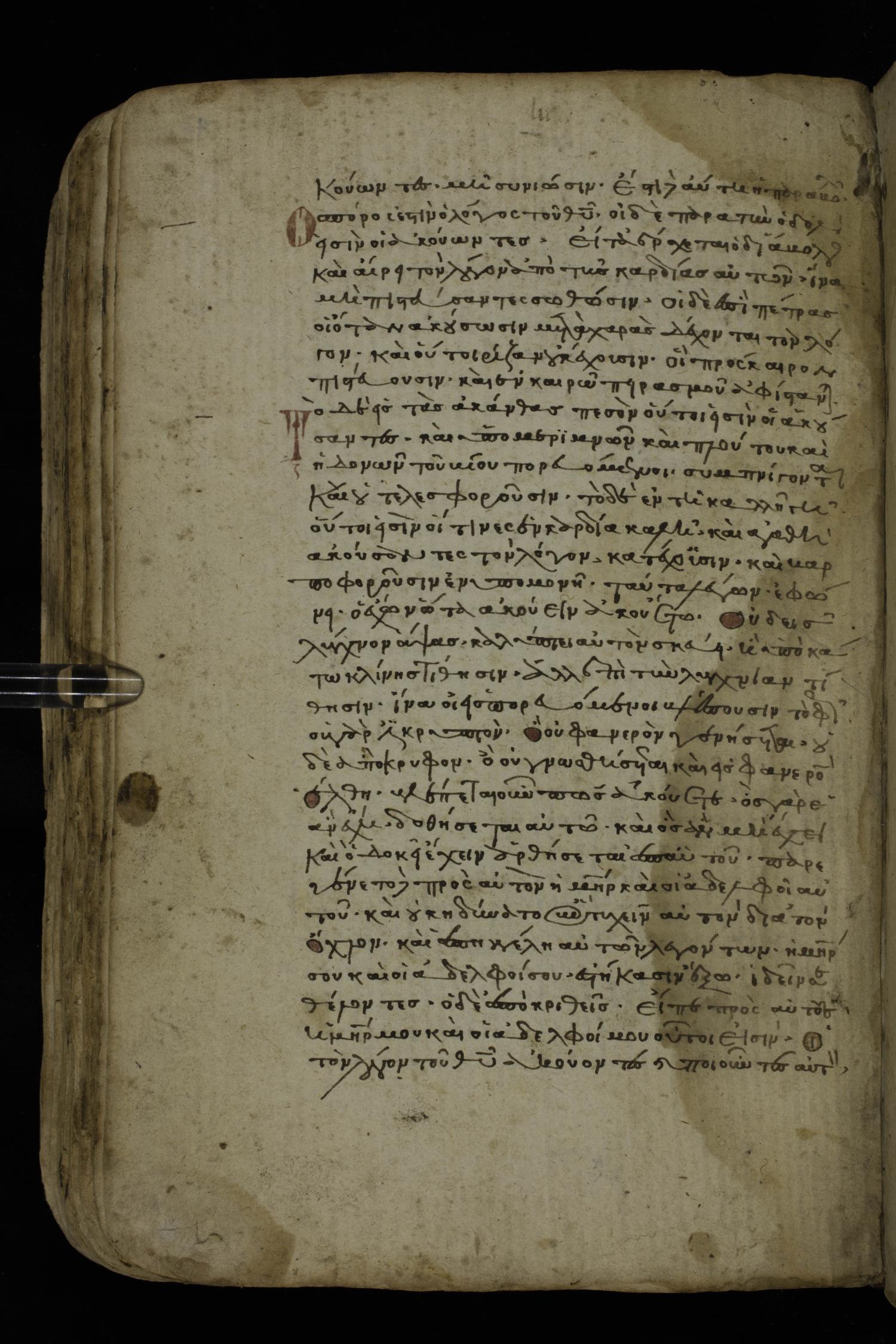 Fourteenth century minuscule of the Gospels on paper; 161 leaves, 1 column, 25-30 lines per column. Images were taken at the National Library of Greece in Athens.