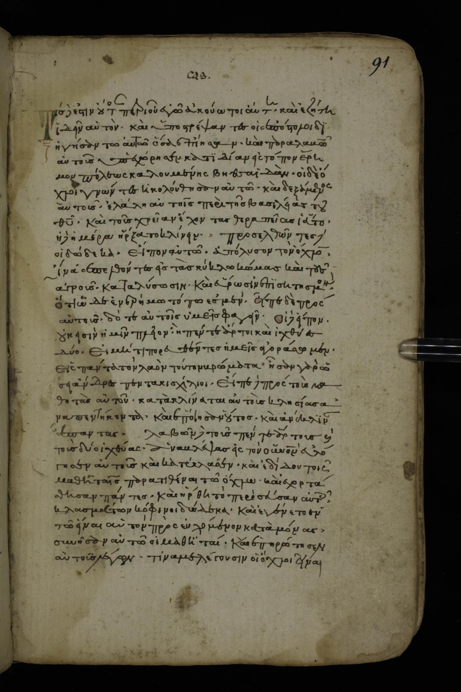 Fourteenth century minuscule of the Gospels on paper; 161 leaves, 1 column, 25-30 lines per column. Images were taken at the National Library of Greece in Athens.