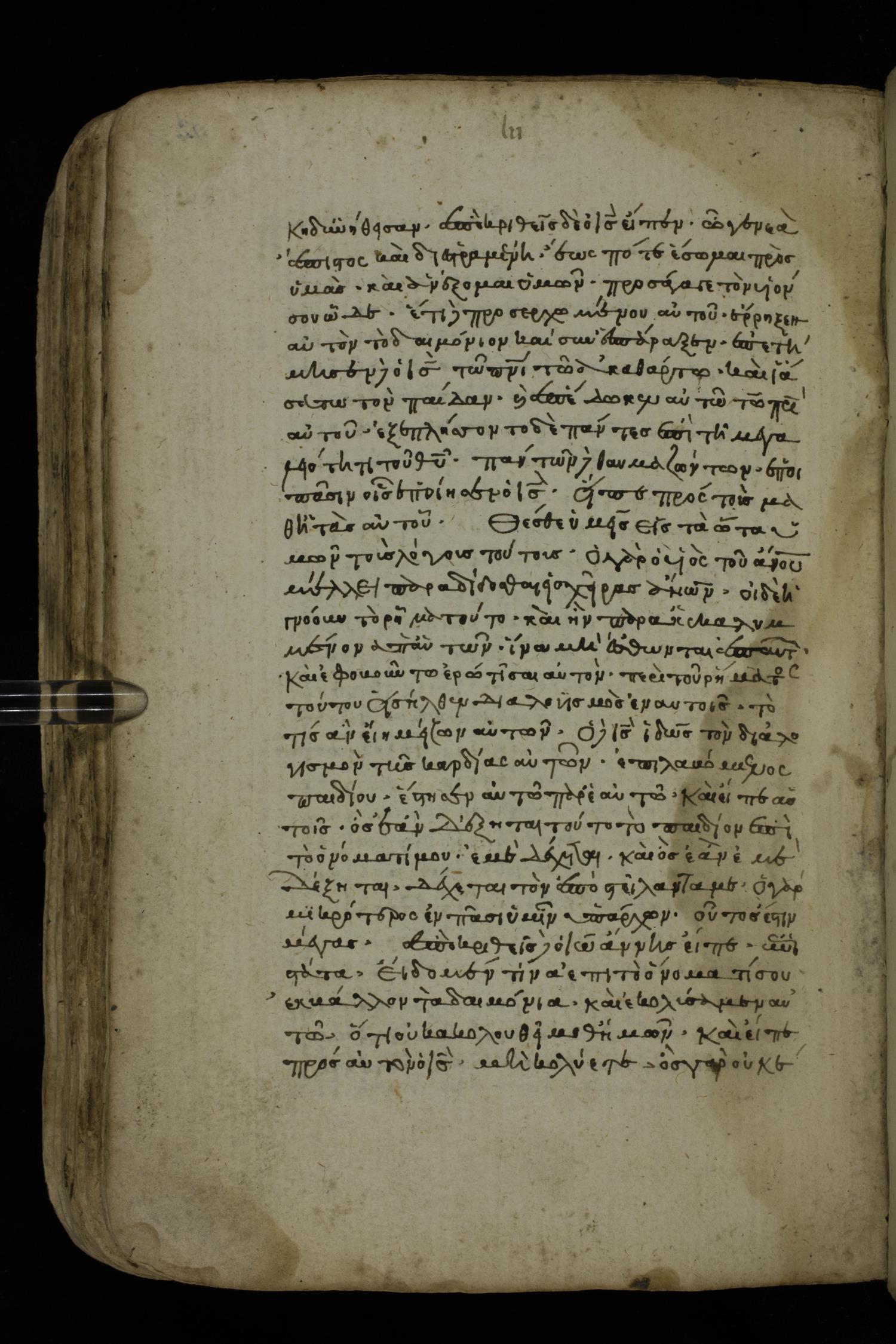 Fourteenth century minuscule of the Gospels on paper; 161 leaves, 1 column, 25-30 lines per column. Images were taken at the National Library of Greece in Athens.