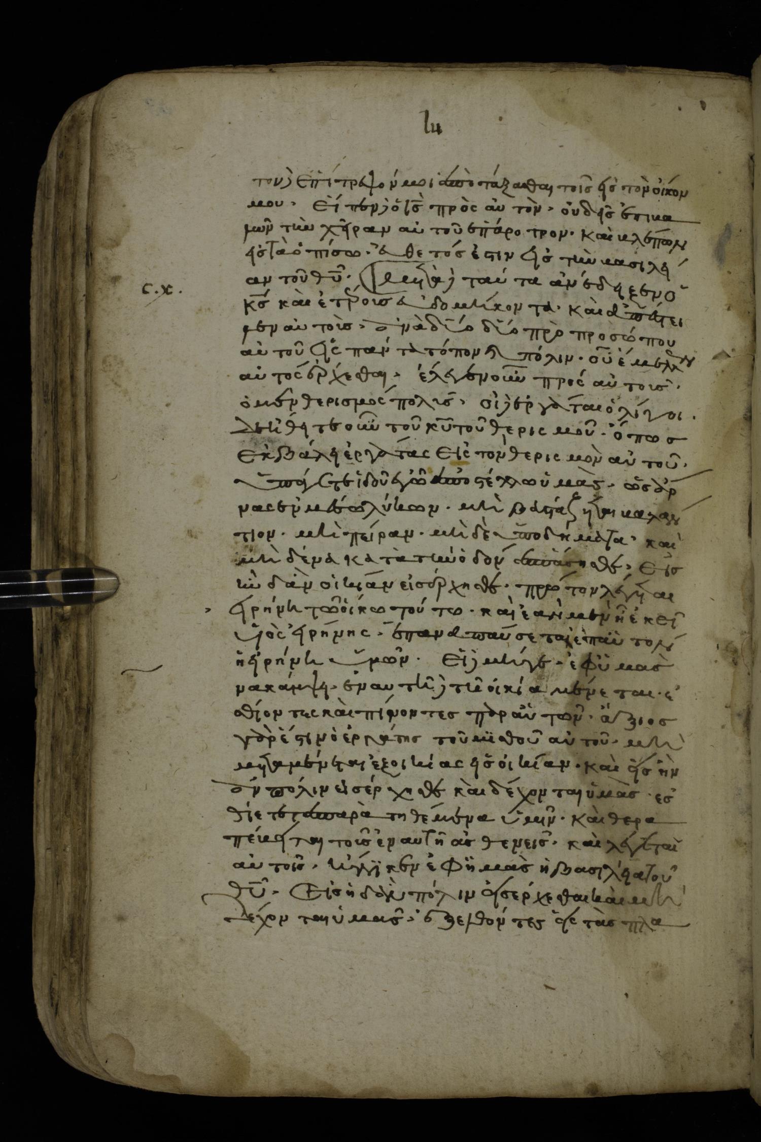 Fourteenth century minuscule of the Gospels on paper; 161 leaves, 1 column, 25-30 lines per column. Images were taken at the National Library of Greece in Athens.
