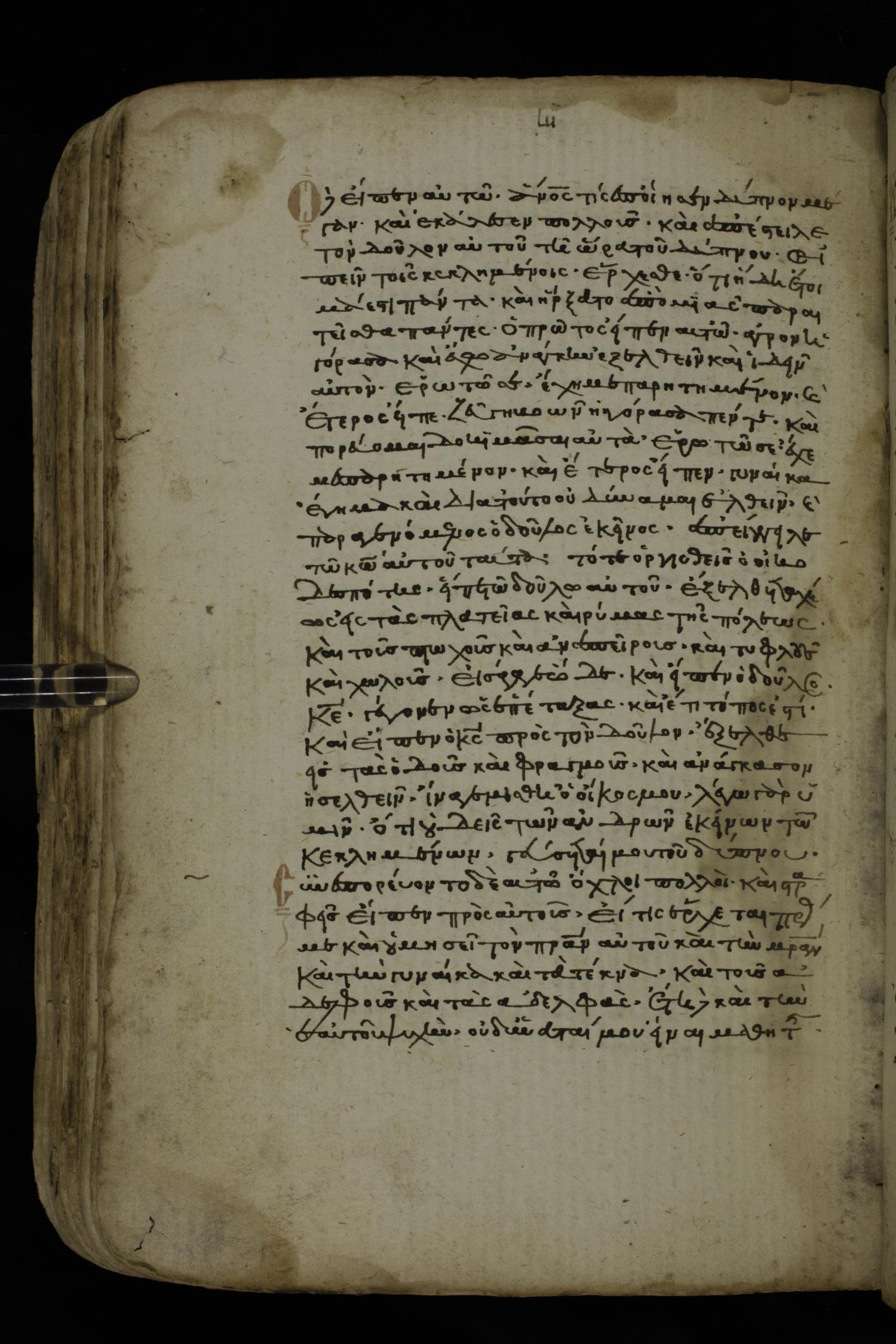 Fourteenth century minuscule of the Gospels on paper; 161 leaves, 1 column, 25-30 lines per column. Images were taken at the National Library of Greece in Athens.