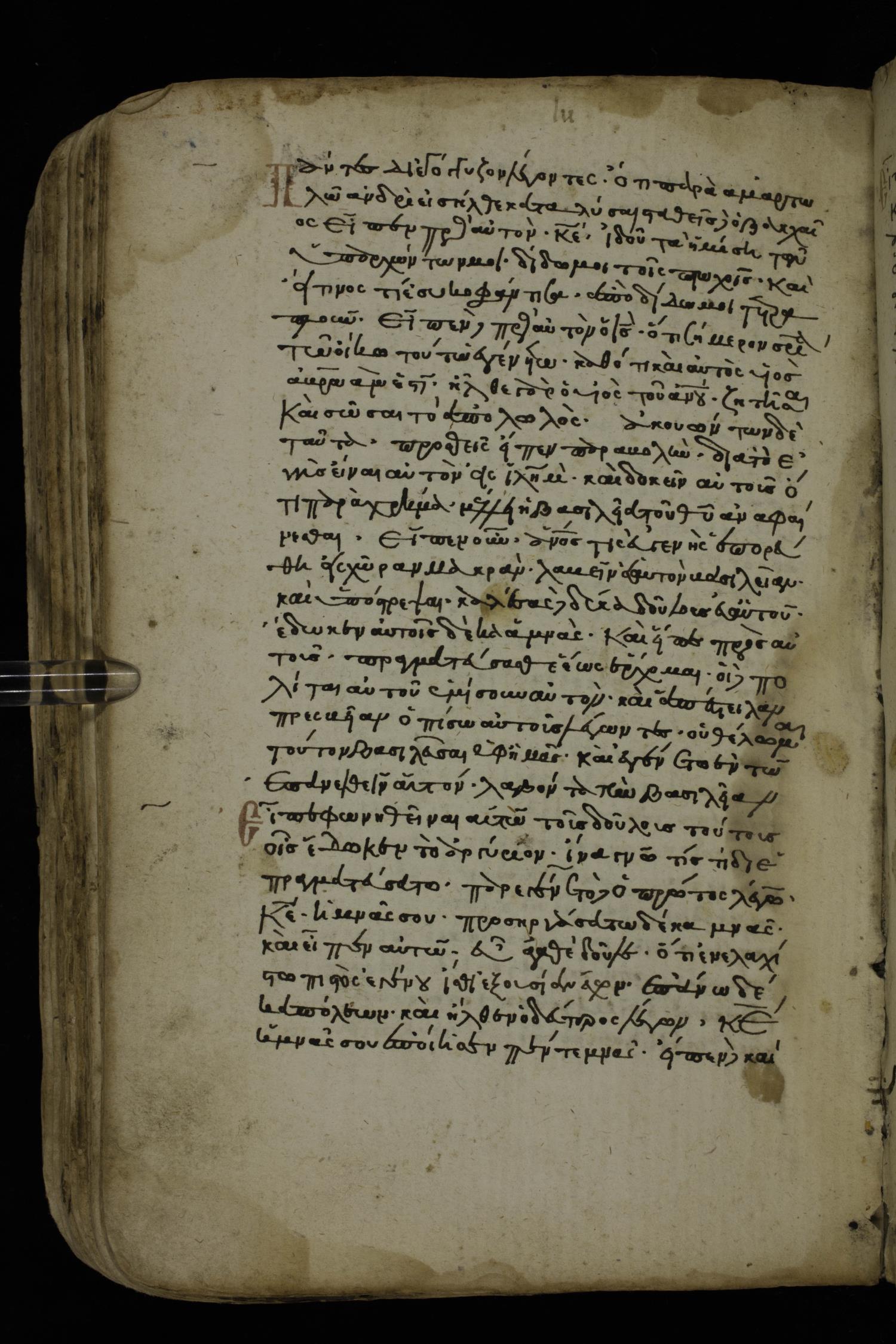 Fourteenth century minuscule of the Gospels on paper; 161 leaves, 1 column, 25-30 lines per column. Images were taken at the National Library of Greece in Athens.
