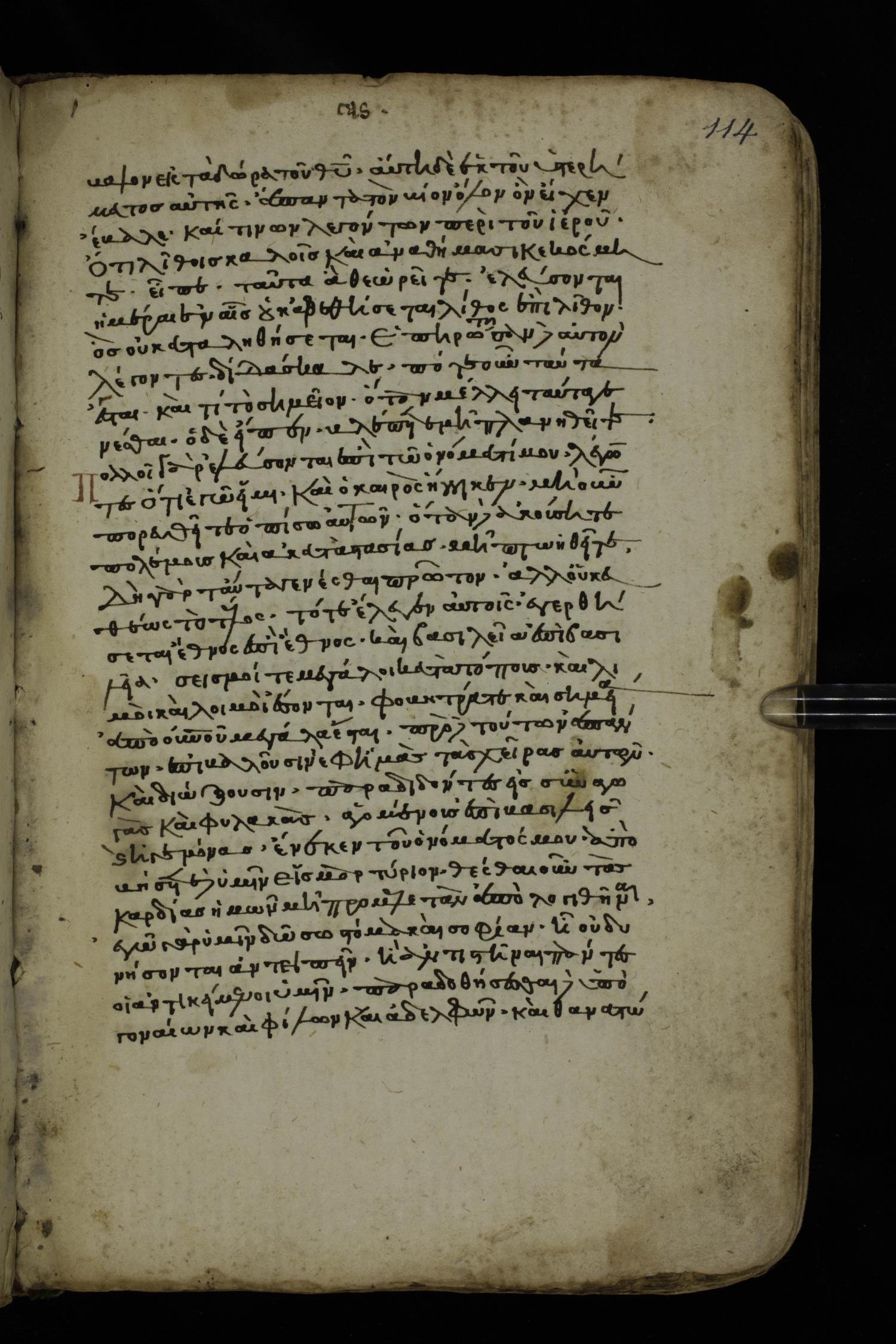Fourteenth century minuscule of the Gospels on paper; 161 leaves, 1 column, 25-30 lines per column. Images were taken at the National Library of Greece in Athens.