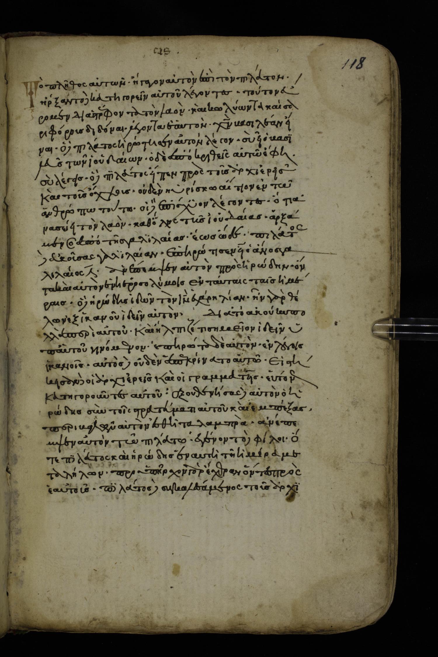 Fourteenth century minuscule of the Gospels on paper; 161 leaves, 1 column, 25-30 lines per column. Images were taken at the National Library of Greece in Athens.