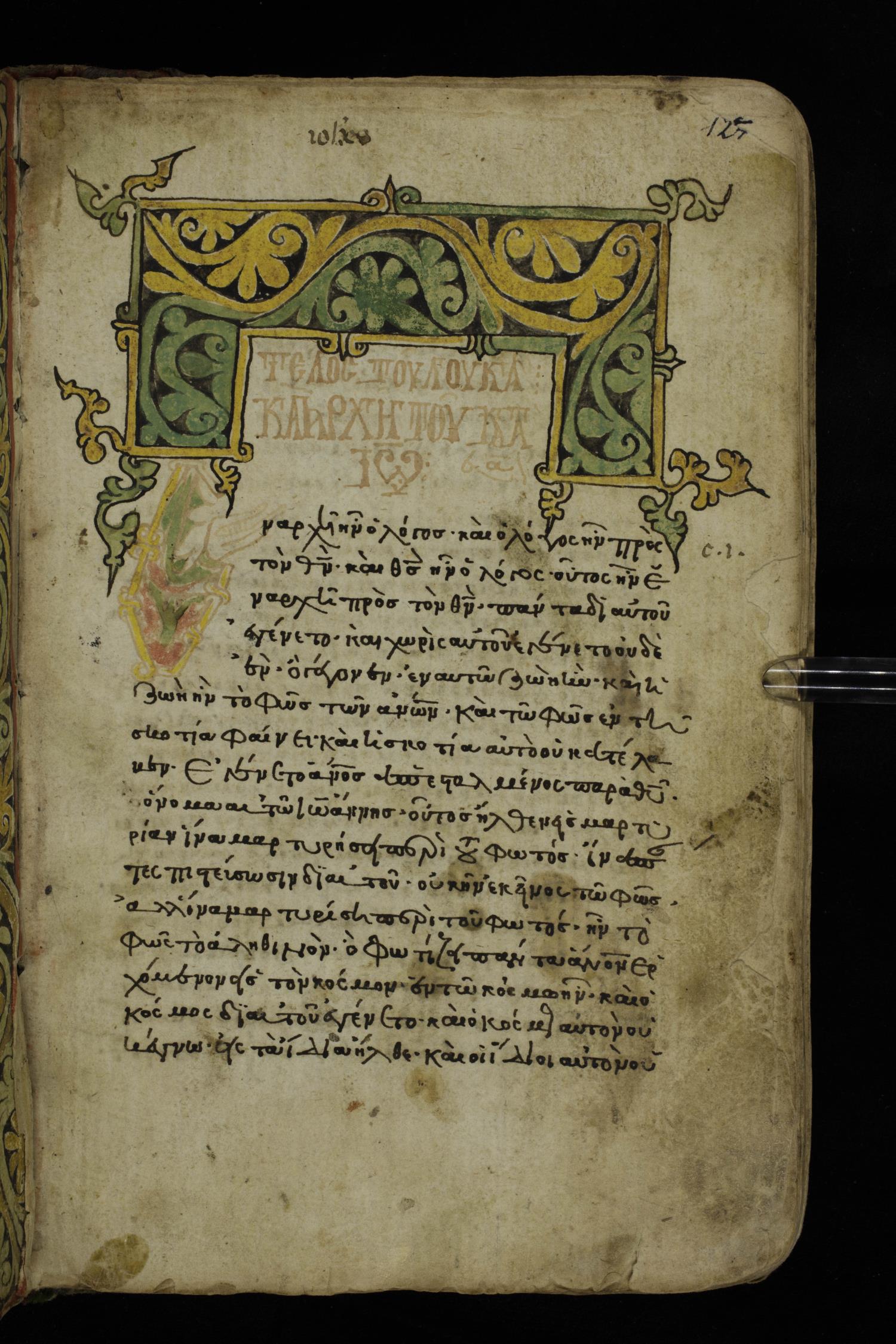 Fourteenth century minuscule of the Gospels on paper; 161 leaves, 1 column, 25-30 lines per column. Images were taken at the National Library of Greece in Athens.