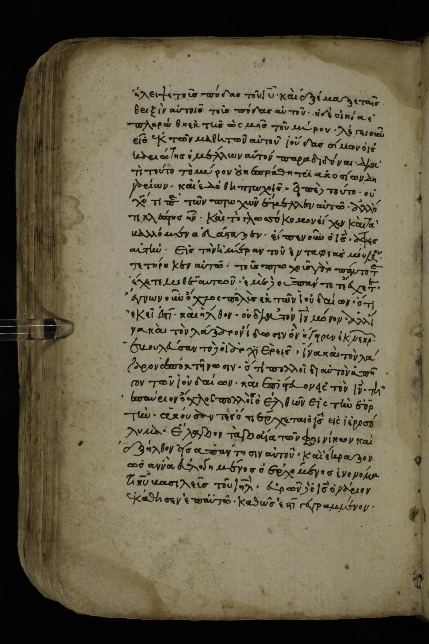 Fourteenth century minuscule of the Gospels on paper; 161 leaves, 1 column, 25-30 lines per column. Images were taken at the National Library of Greece in Athens.