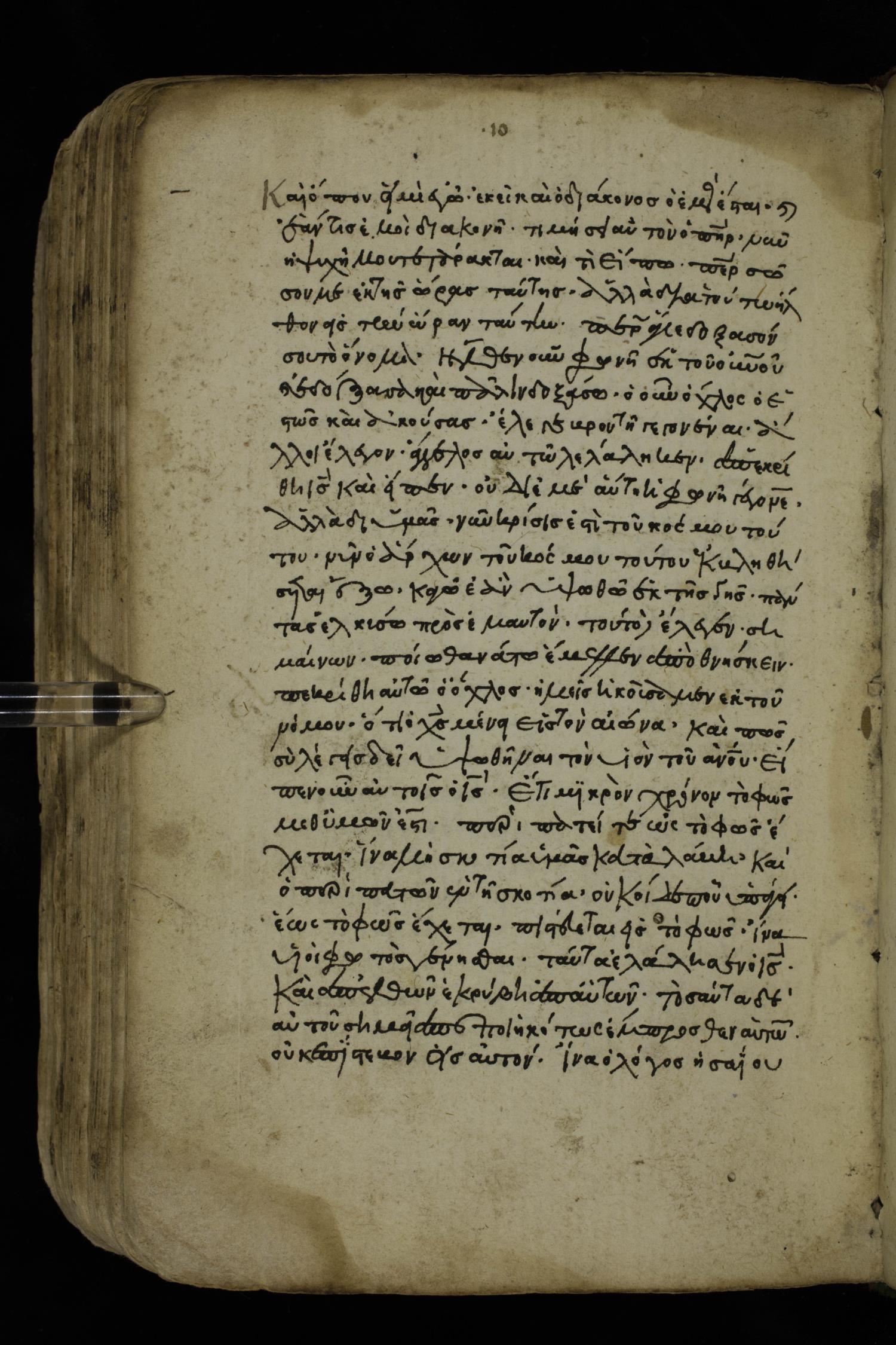 Fourteenth century minuscule of the Gospels on paper; 161 leaves, 1 column, 25-30 lines per column. Images were taken at the National Library of Greece in Athens.