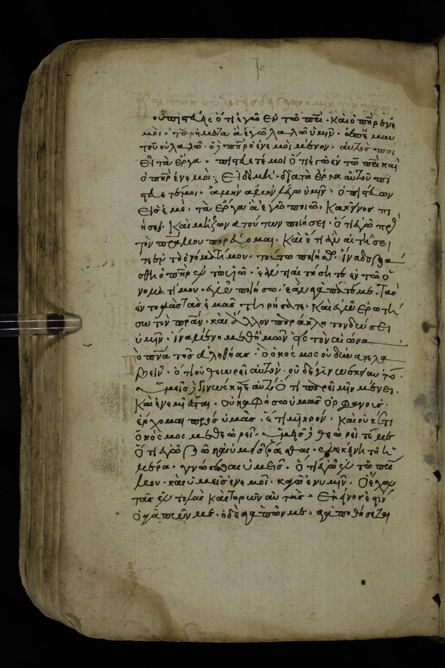 Fourteenth century minuscule of the Gospels on paper; 161 leaves, 1 column, 25-30 lines per column. Images were taken at the National Library of Greece in Athens.