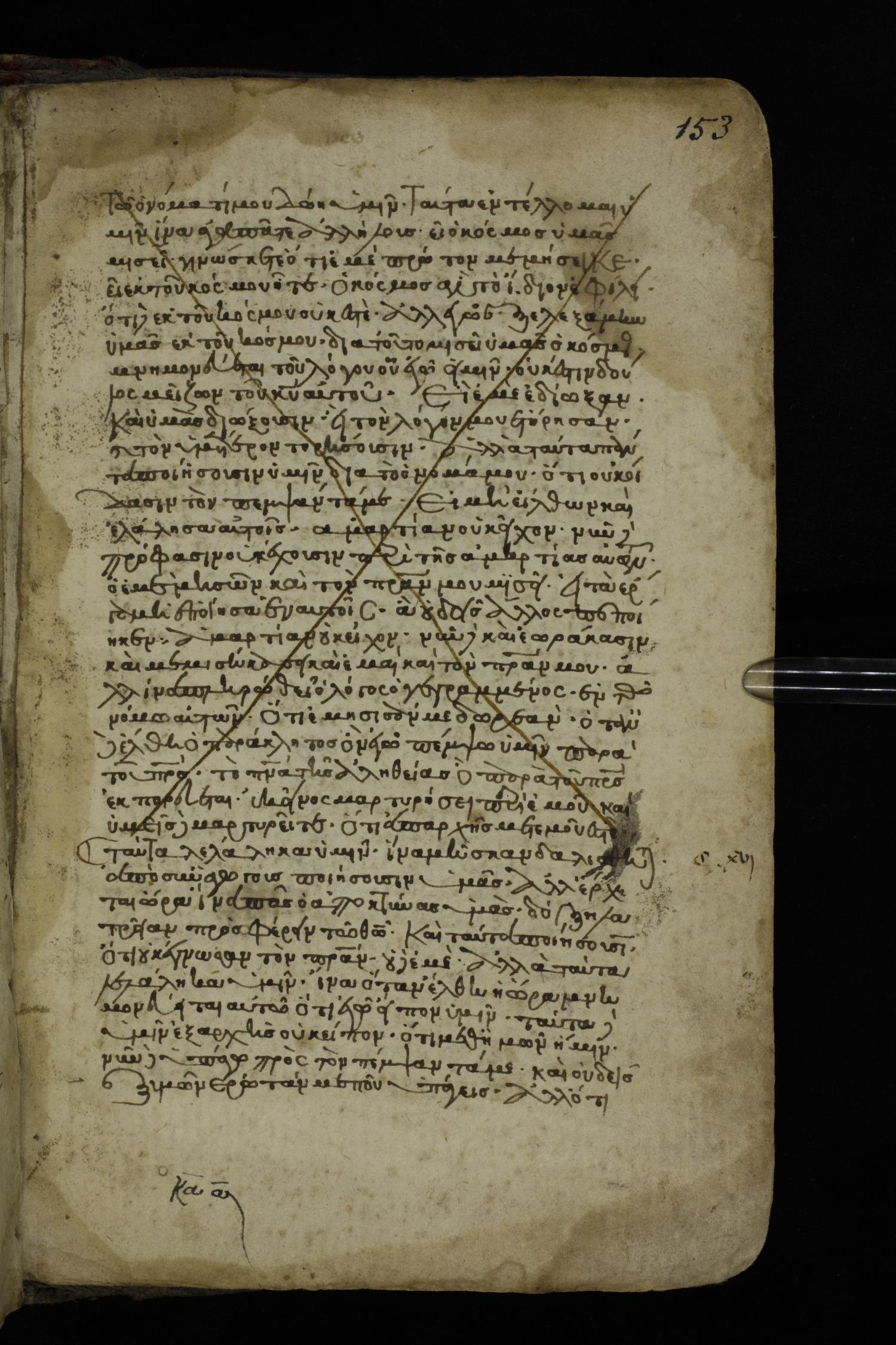 Fourteenth century minuscule of the Gospels on paper; 161 leaves, 1 column, 25-30 lines per column. Images were taken at the National Library of Greece in Athens.