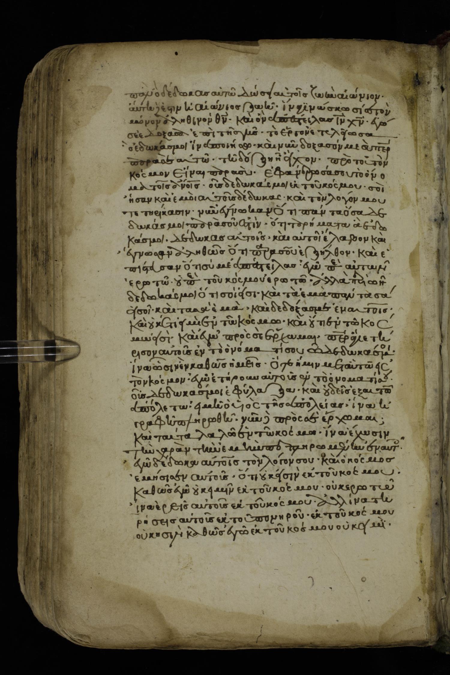 Fourteenth century minuscule of the Gospels on paper; 161 leaves, 1 column, 25-30 lines per column. Images were taken at the National Library of Greece in Athens.