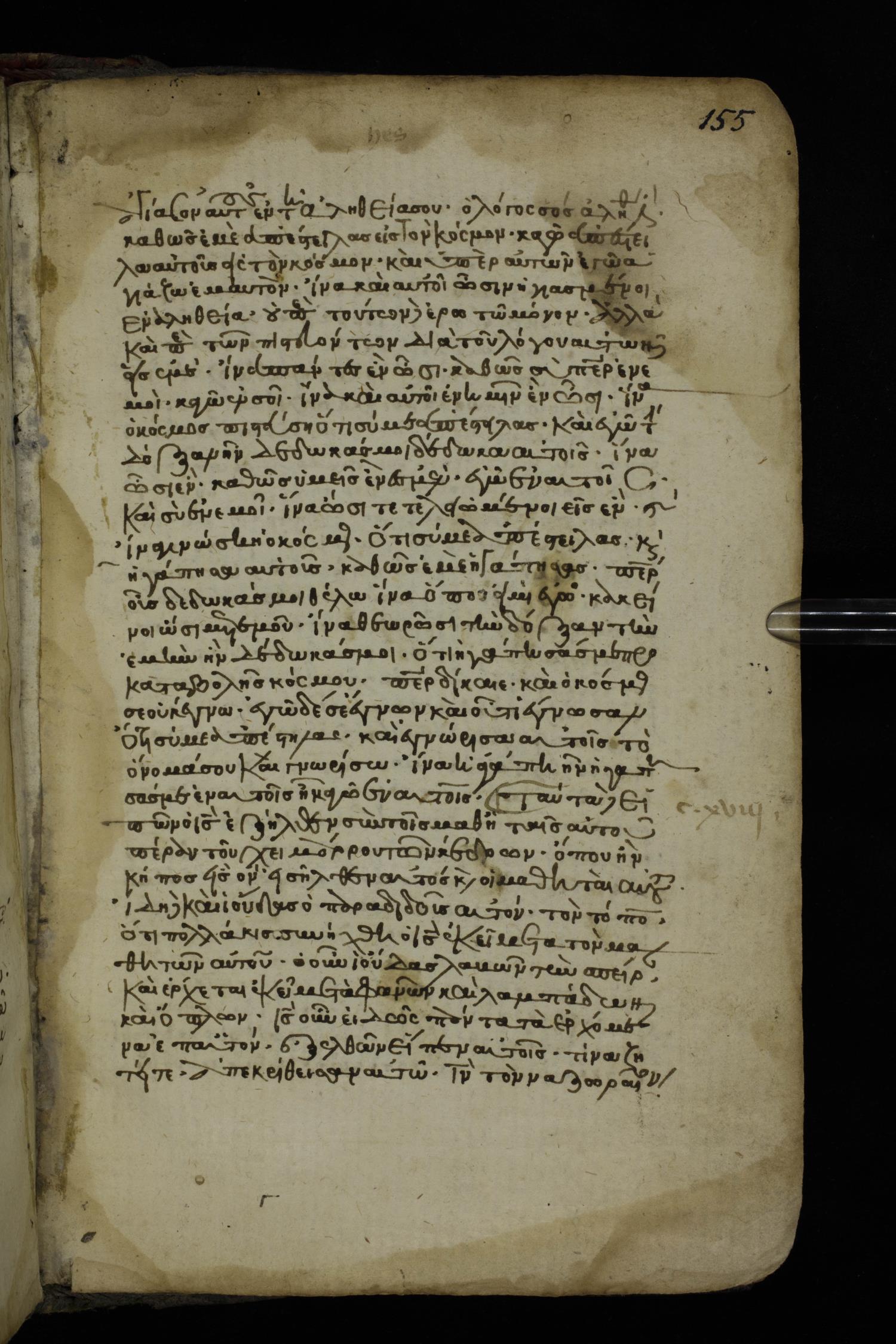 Fourteenth century minuscule of the Gospels on paper; 161 leaves, 1 column, 25-30 lines per column. Images were taken at the National Library of Greece in Athens.