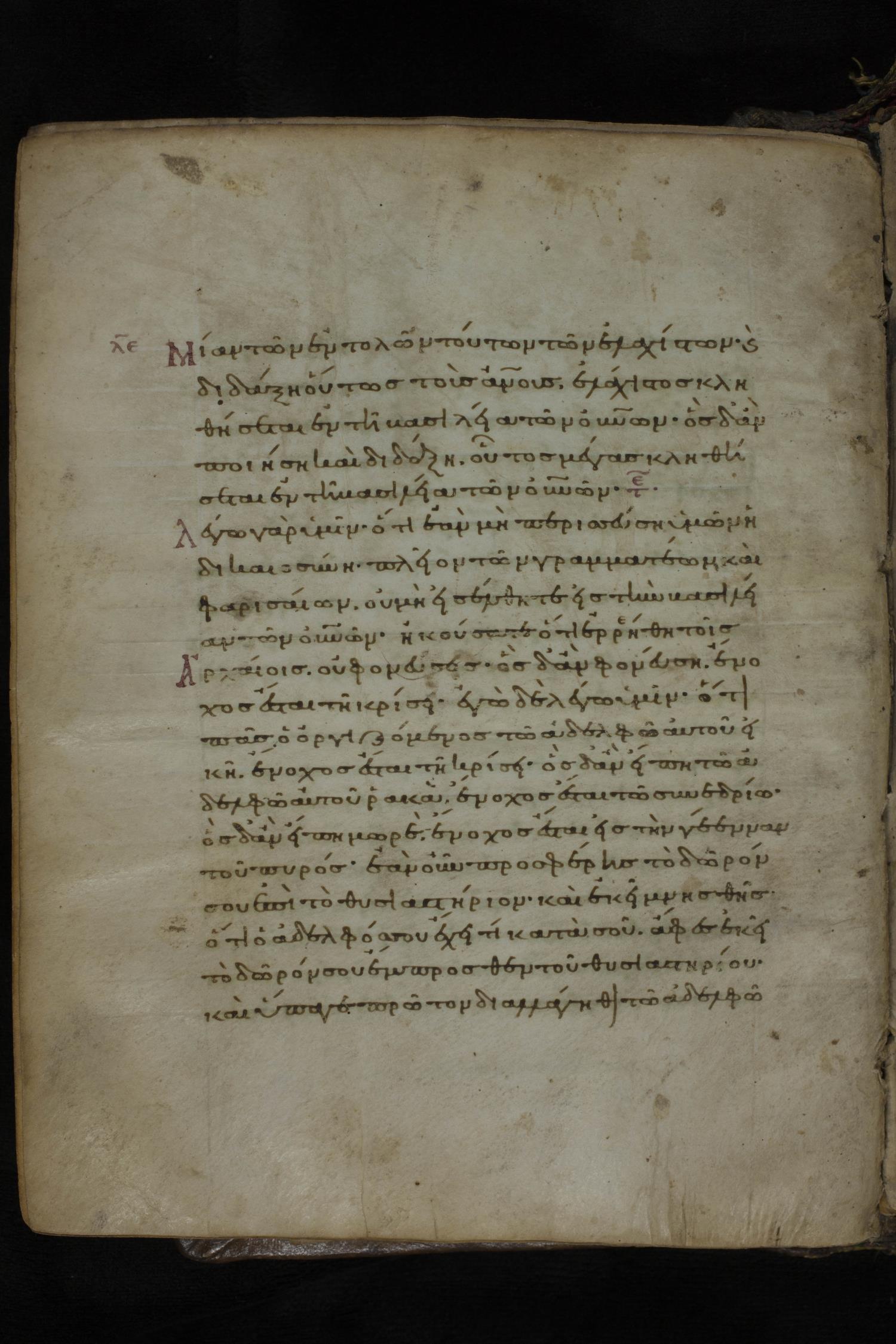 Eleventh or twelfth century minuscule of the Gospels on parchment; 231 leaves, 1 column, 21 lines per column. Images were taken at the National Library of Greece in Athens.