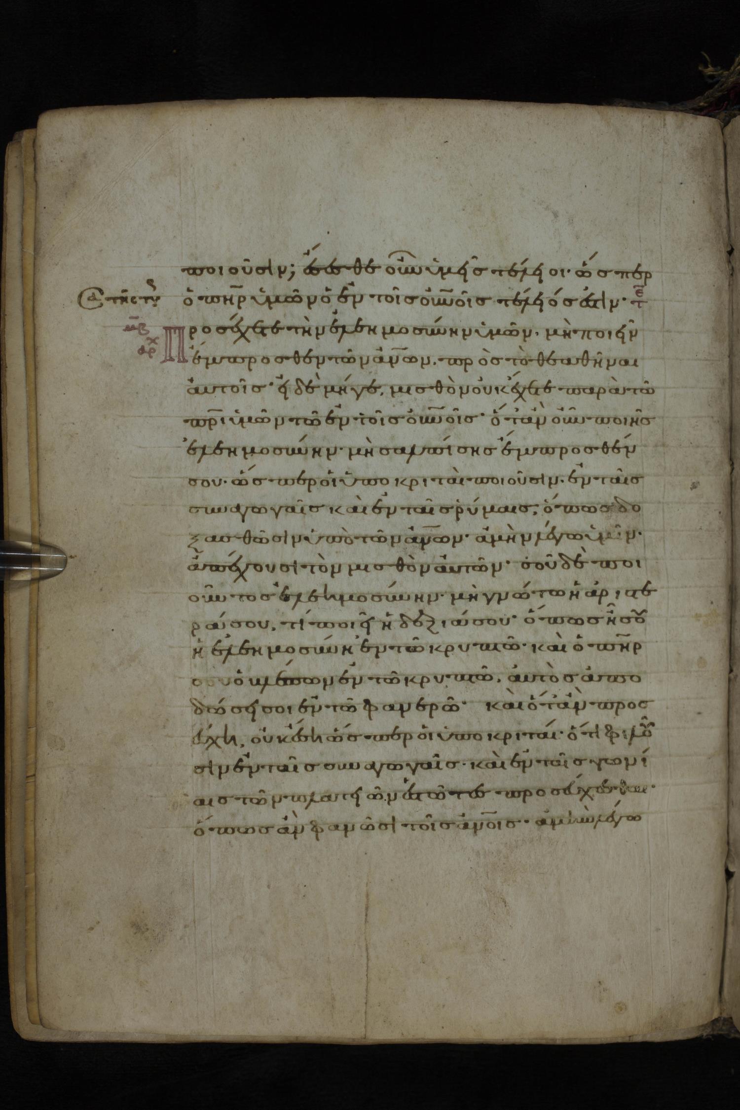 Eleventh or twelfth century minuscule of the Gospels on parchment; 231 leaves, 1 column, 21 lines per column. Images were taken at the National Library of Greece in Athens.