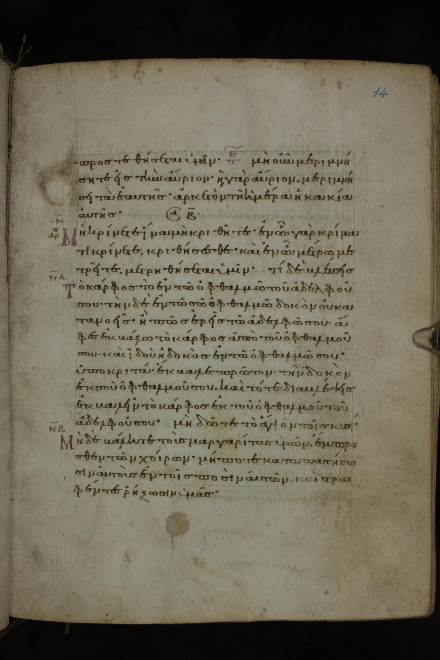 Eleventh or twelfth century minuscule of the Gospels on parchment; 231 leaves, 1 column, 21 lines per column. Images were taken at the National Library of Greece in Athens.