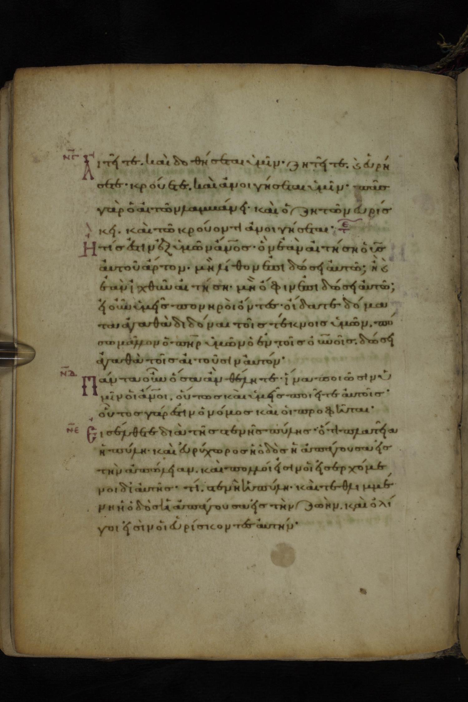 Eleventh or twelfth century minuscule of the Gospels on parchment; 231 leaves, 1 column, 21 lines per column. Images were taken at the National Library of Greece in Athens.