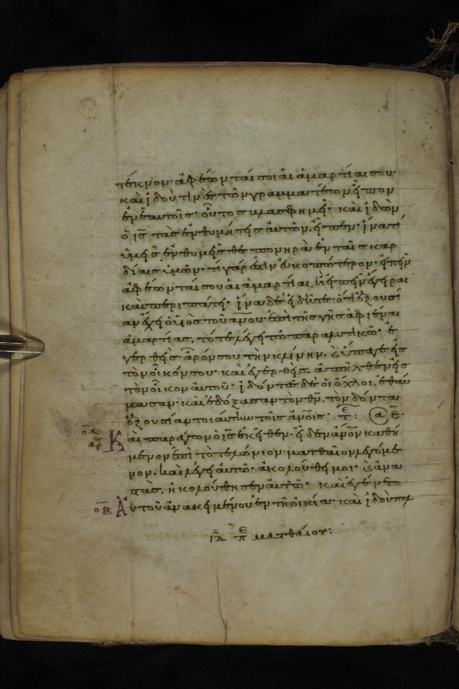 Eleventh or twelfth century minuscule of the Gospels on parchment; 231 leaves, 1 column, 21 lines per column. Images were taken at the National Library of Greece in Athens.