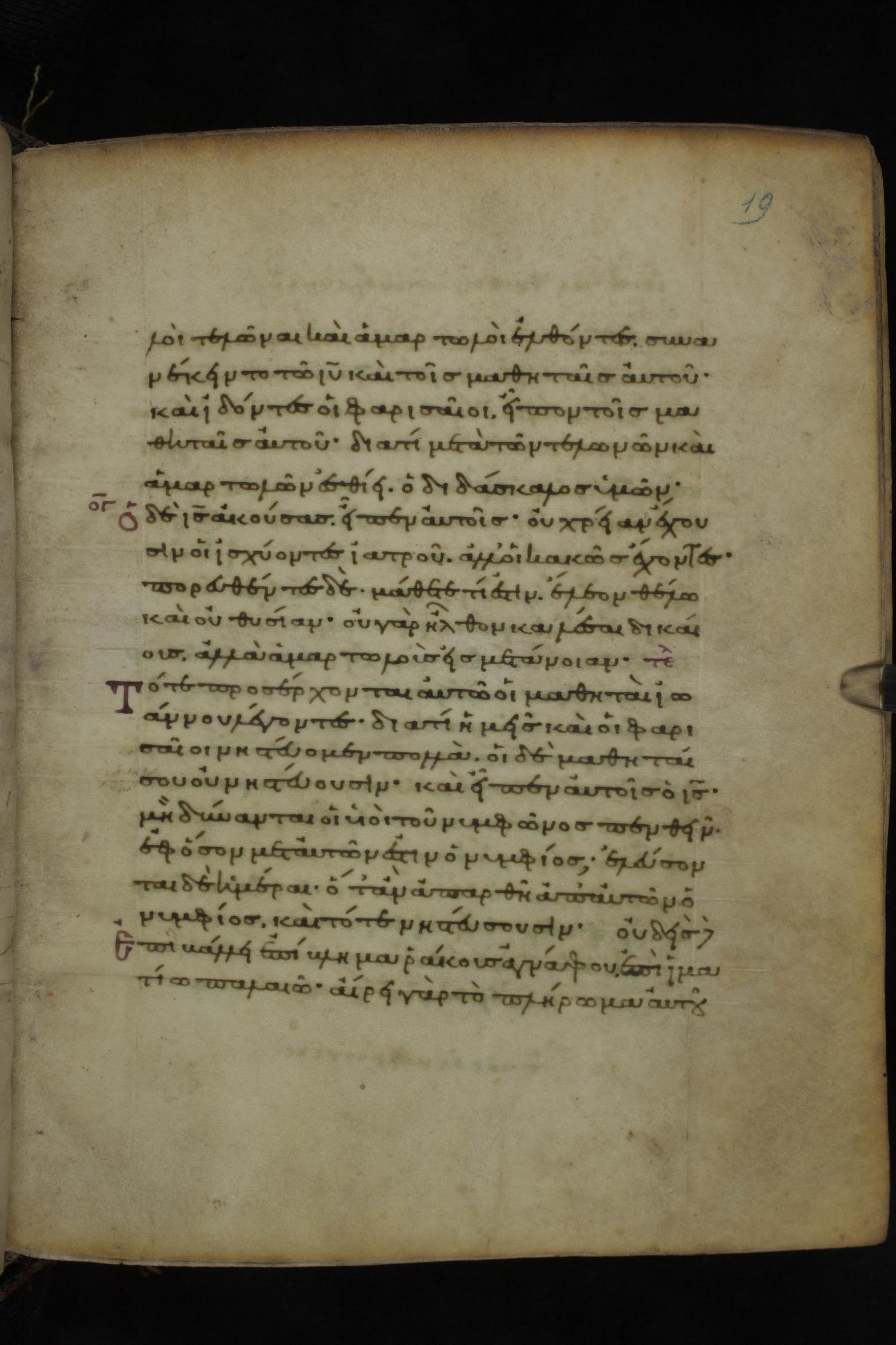 Eleventh or twelfth century minuscule of the Gospels on parchment; 231 leaves, 1 column, 21 lines per column. Images were taken at the National Library of Greece in Athens.