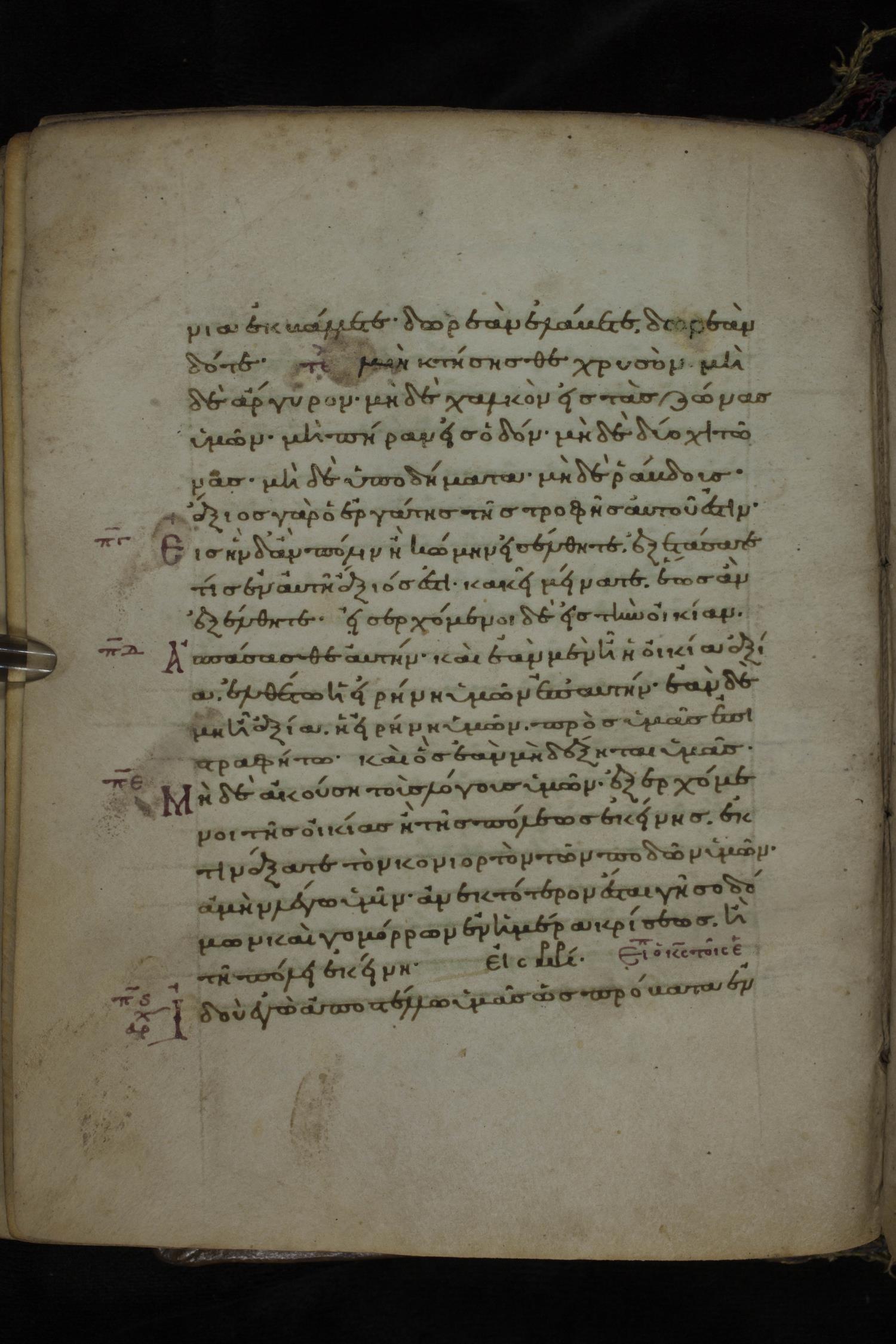 Eleventh or twelfth century minuscule of the Gospels on parchment; 231 leaves, 1 column, 21 lines per column. Images were taken at the National Library of Greece in Athens.