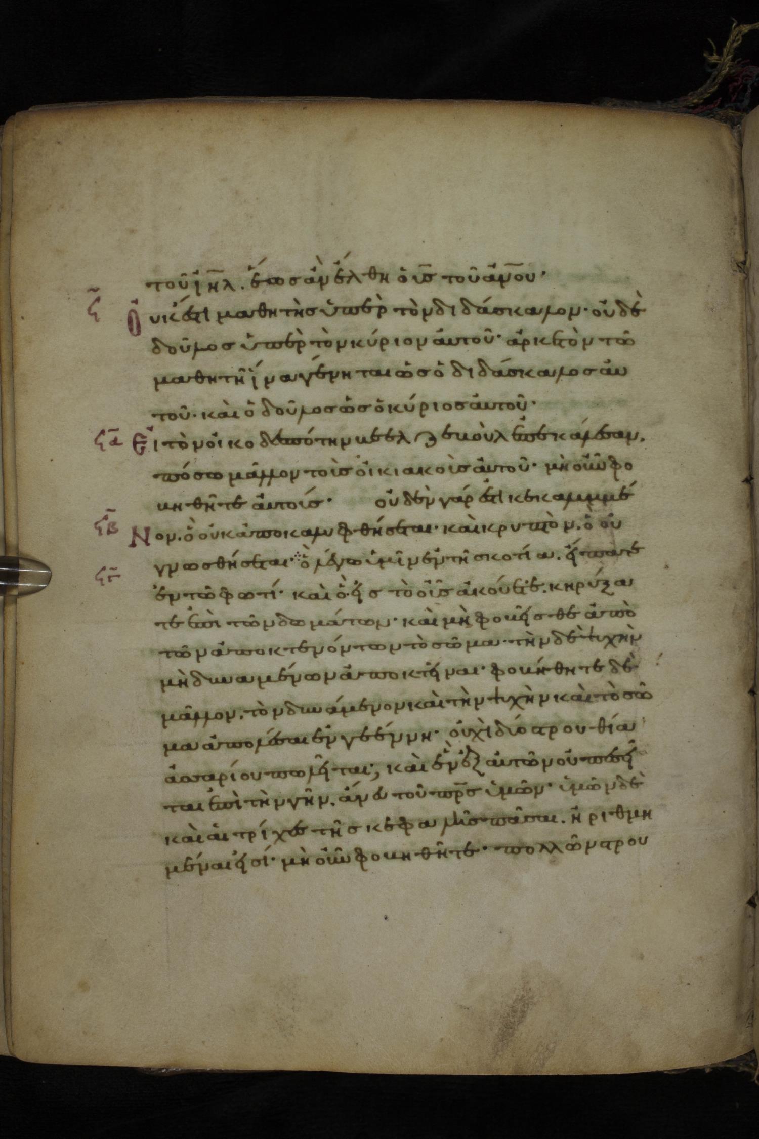 Eleventh or twelfth century minuscule of the Gospels on parchment; 231 leaves, 1 column, 21 lines per column. Images were taken at the National Library of Greece in Athens.