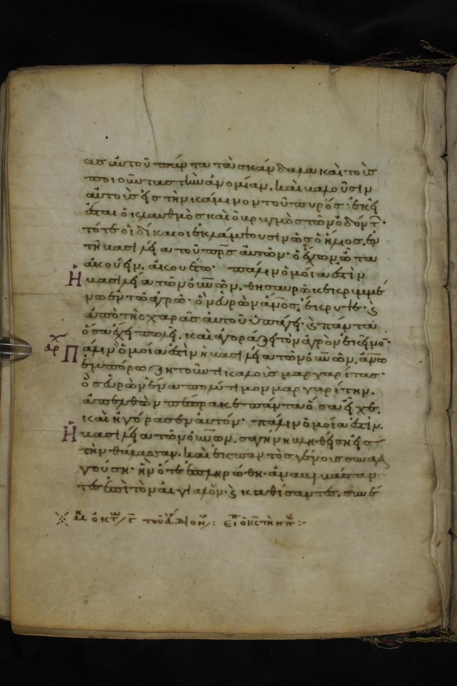 Eleventh or twelfth century minuscule of the Gospels on parchment; 231 leaves, 1 column, 21 lines per column. Images were taken at the National Library of Greece in Athens.