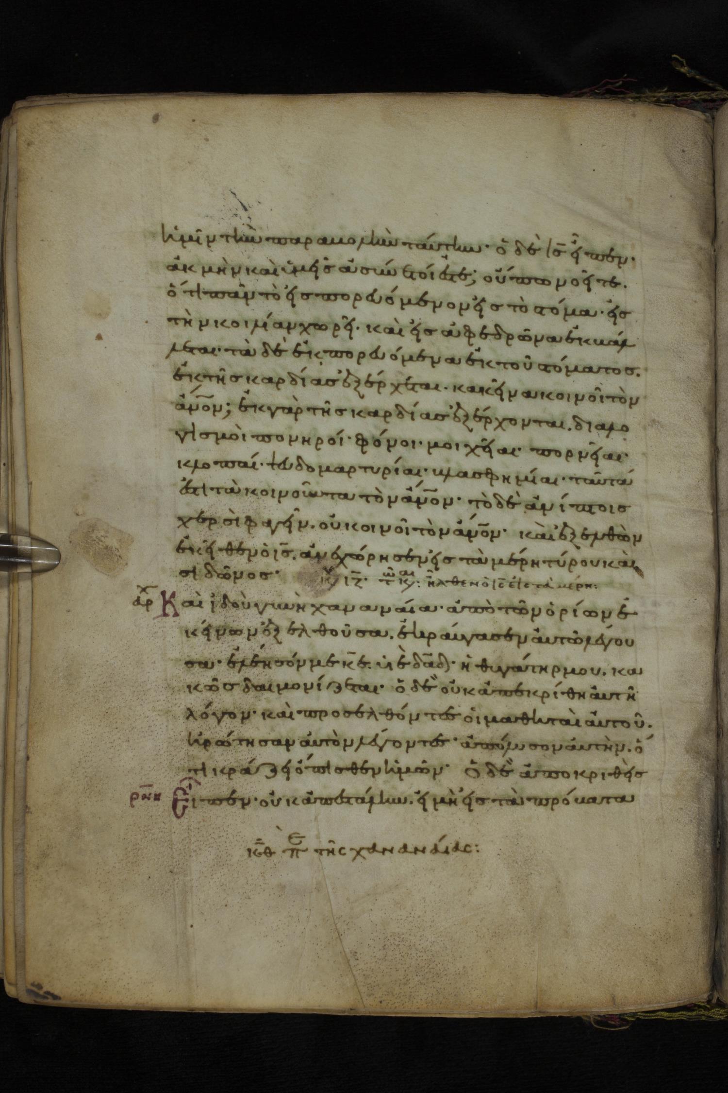 Eleventh or twelfth century minuscule of the Gospels on parchment; 231 leaves, 1 column, 21 lines per column. Images were taken at the National Library of Greece in Athens.