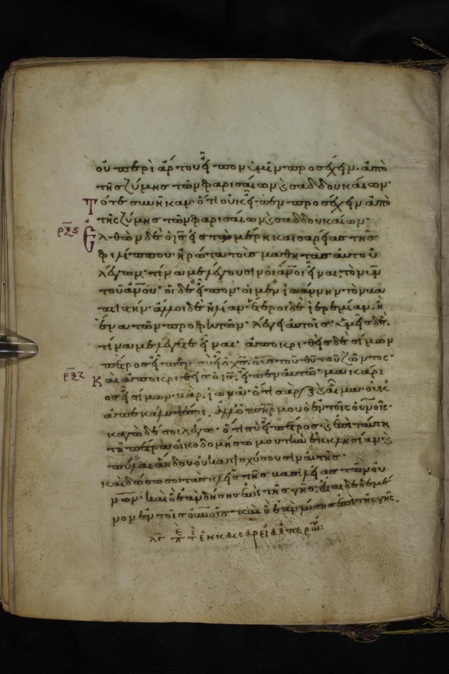 Eleventh or twelfth century minuscule of the Gospels on parchment; 231 leaves, 1 column, 21 lines per column. Images were taken at the National Library of Greece in Athens.