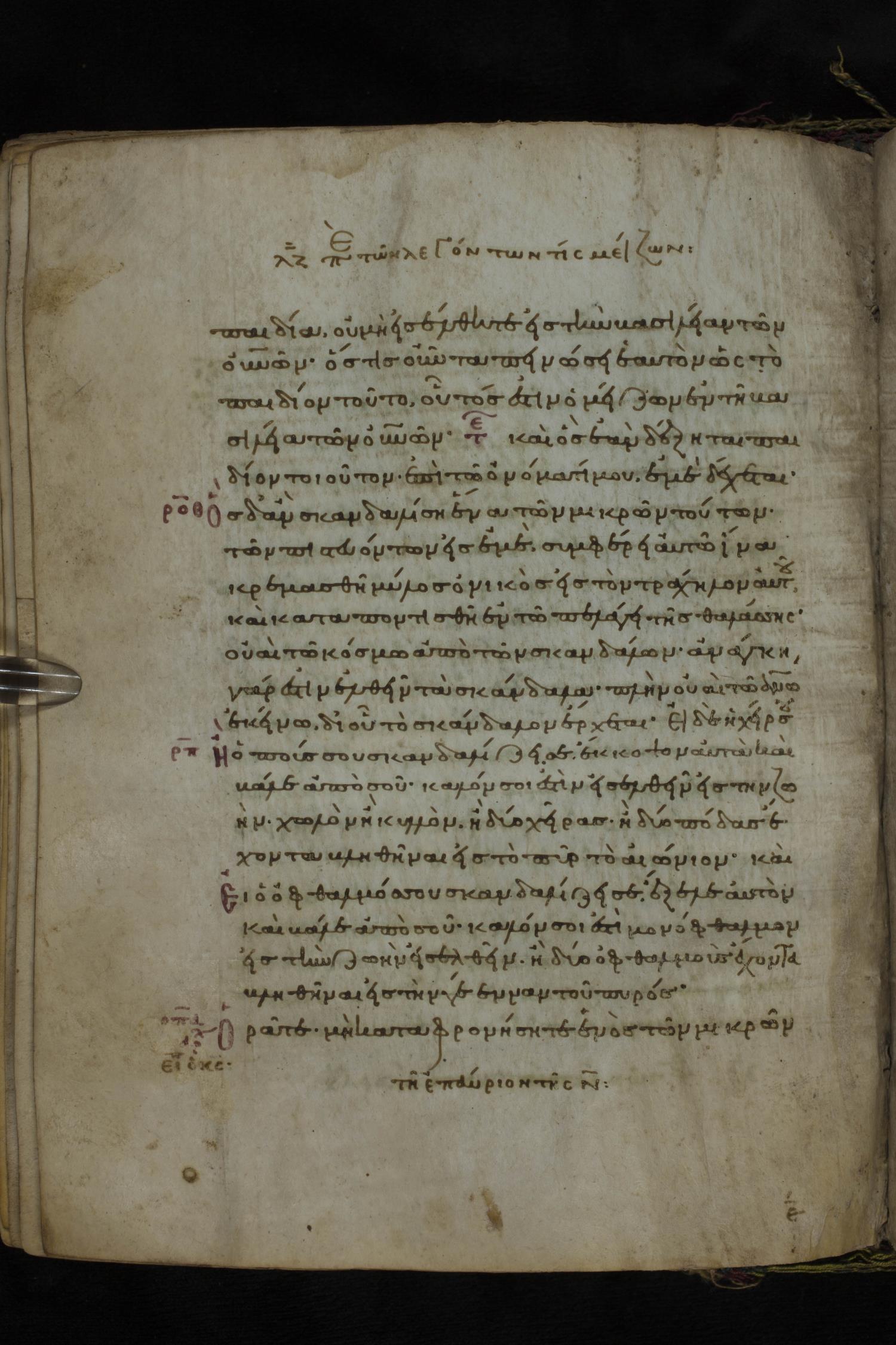 Eleventh or twelfth century minuscule of the Gospels on parchment; 231 leaves, 1 column, 21 lines per column. Images were taken at the National Library of Greece in Athens.