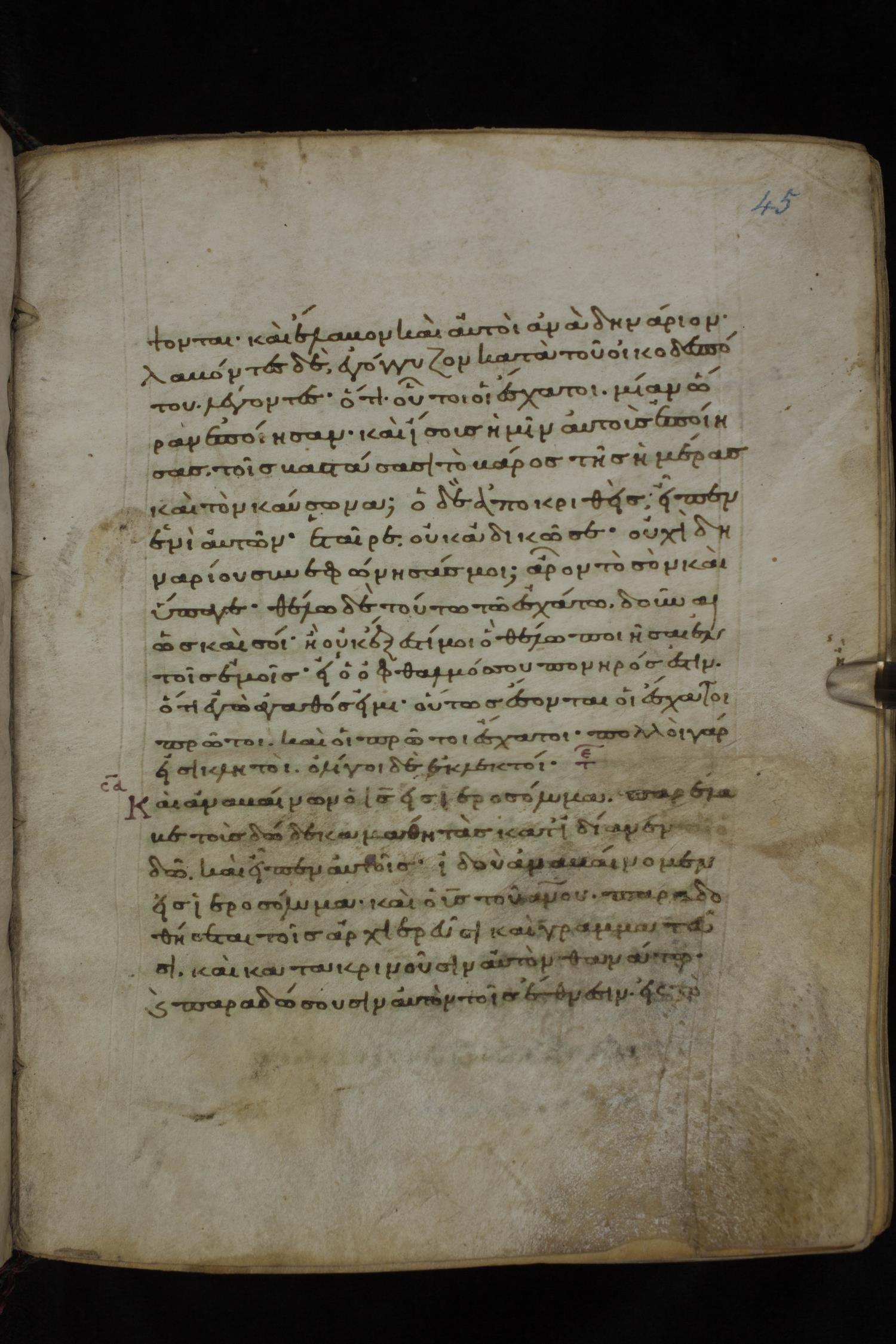 Eleventh or twelfth century minuscule of the Gospels on parchment; 231 leaves, 1 column, 21 lines per column. Images were taken at the National Library of Greece in Athens.