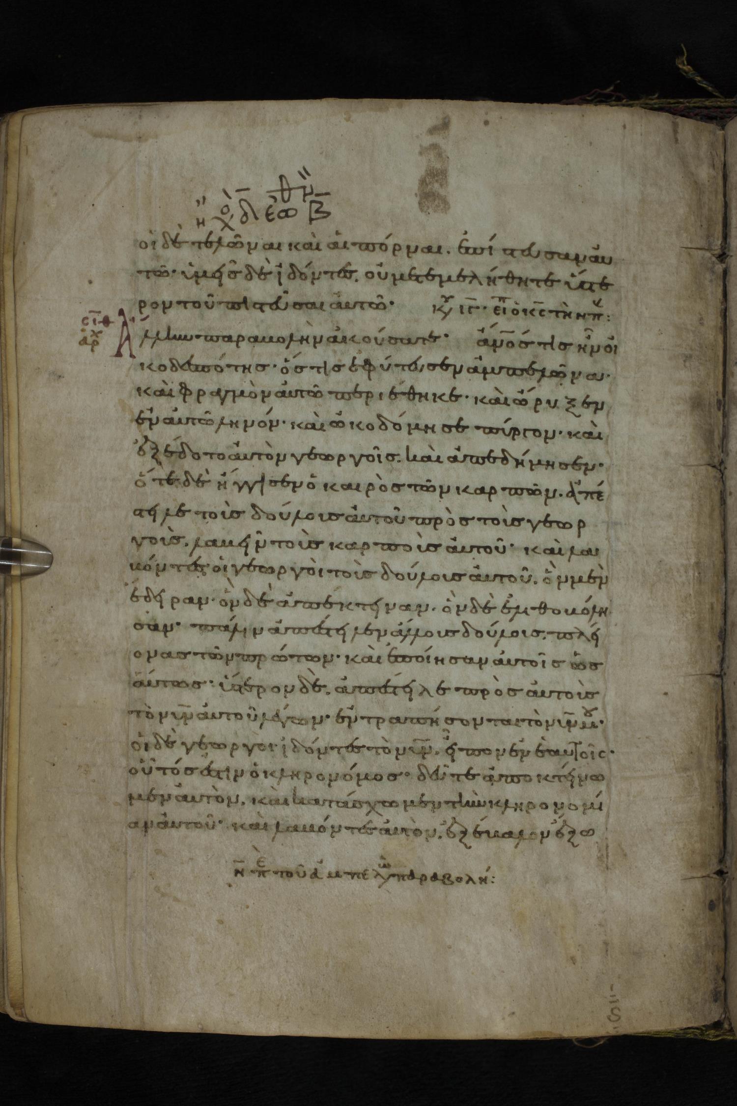 Eleventh or twelfth century minuscule of the Gospels on parchment; 231 leaves, 1 column, 21 lines per column. Images were taken at the National Library of Greece in Athens.