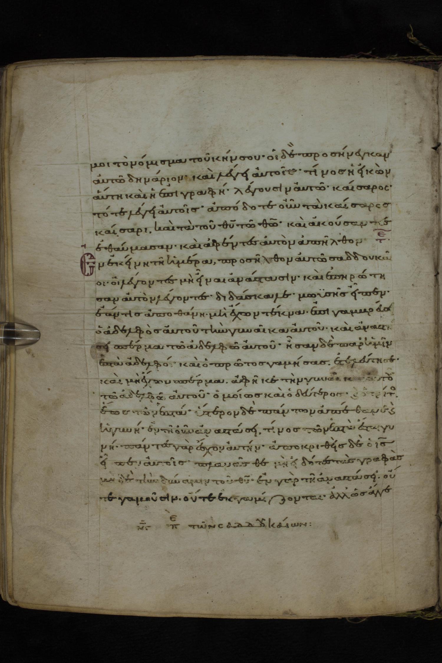 Eleventh or twelfth century minuscule of the Gospels on parchment; 231 leaves, 1 column, 21 lines per column. Images were taken at the National Library of Greece in Athens.