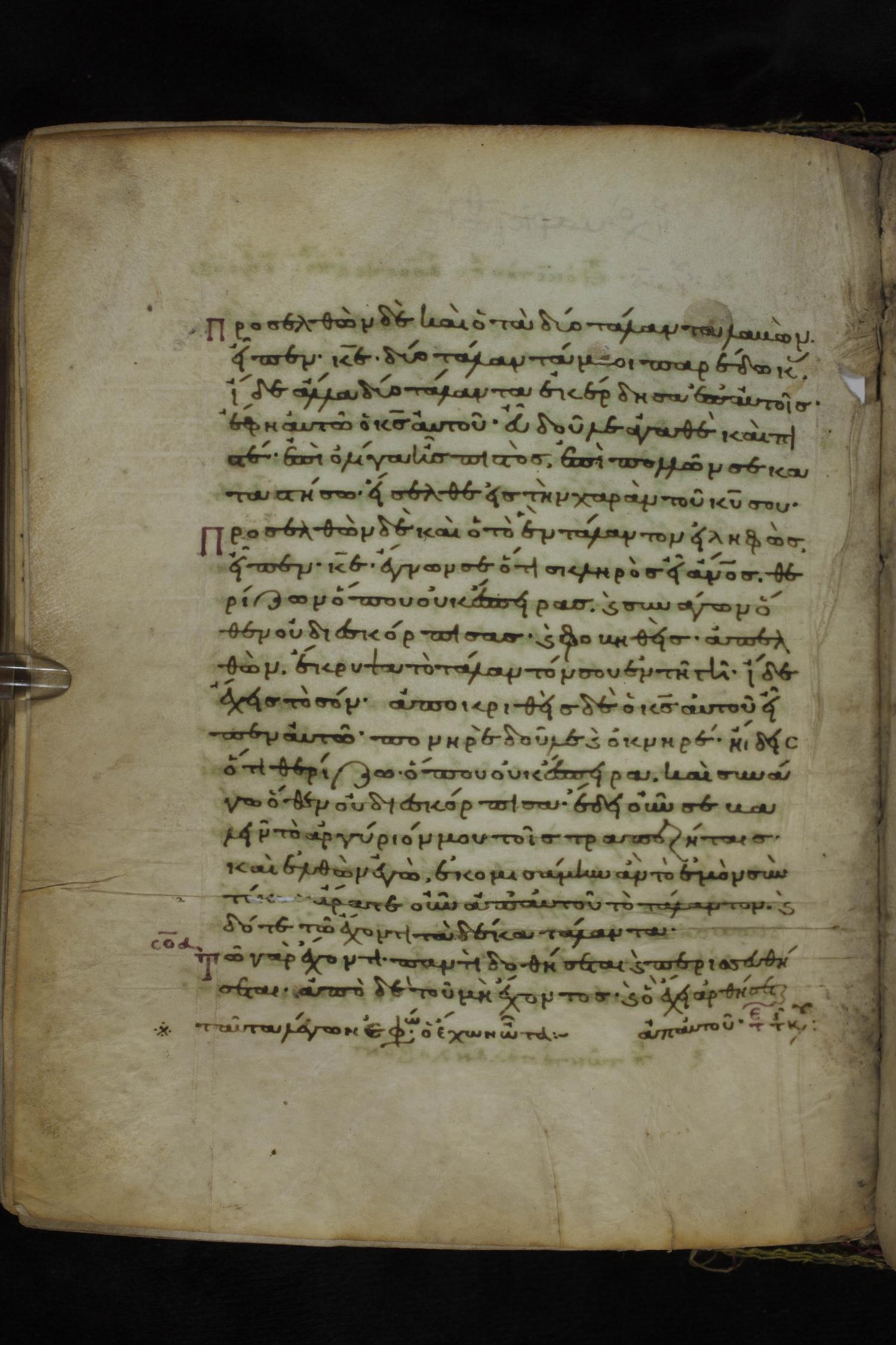 Eleventh or twelfth century minuscule of the Gospels on parchment; 231 leaves, 1 column, 21 lines per column. Images were taken at the National Library of Greece in Athens.