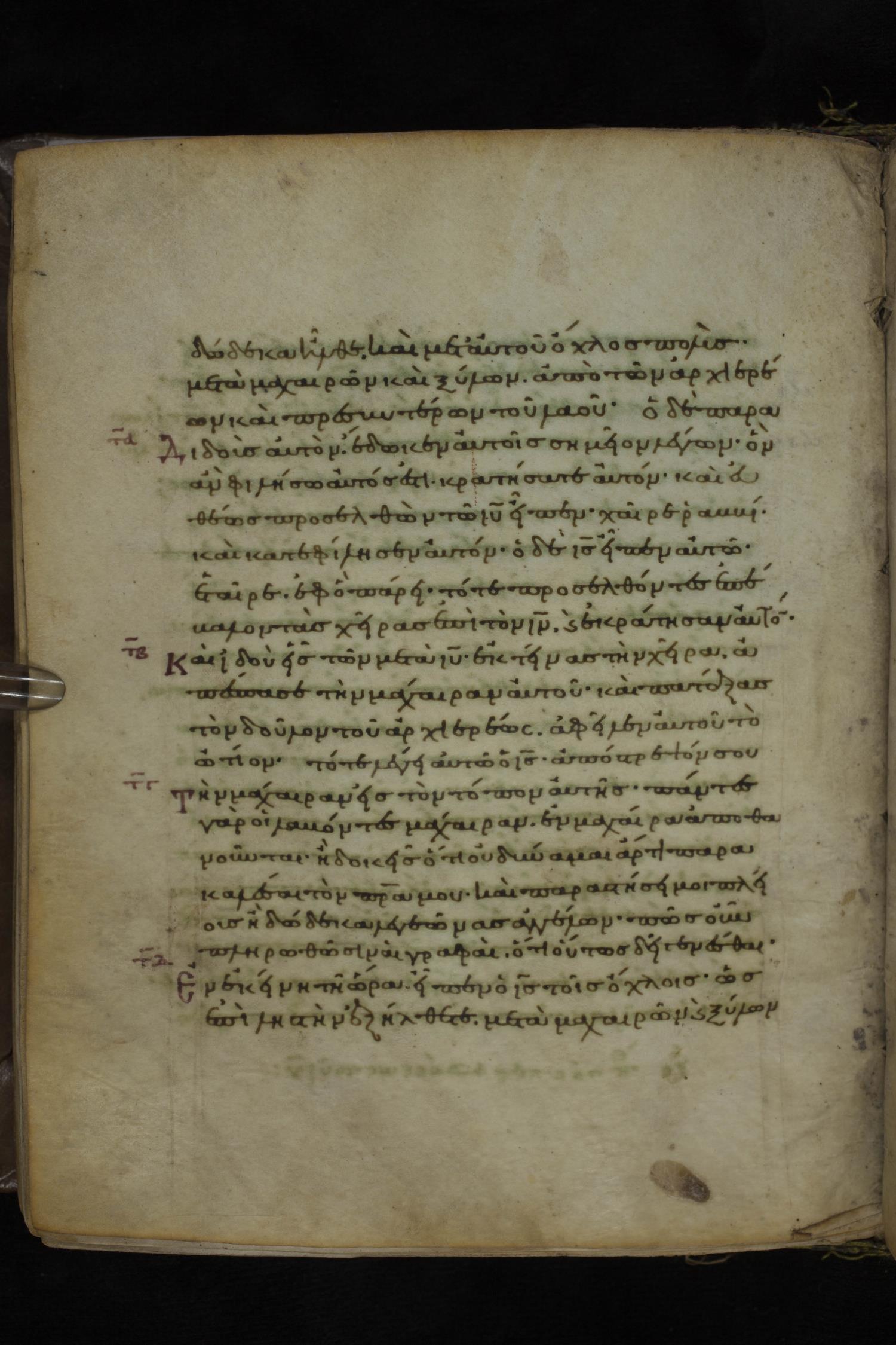 Eleventh or twelfth century minuscule of the Gospels on parchment; 231 leaves, 1 column, 21 lines per column. Images were taken at the National Library of Greece in Athens.