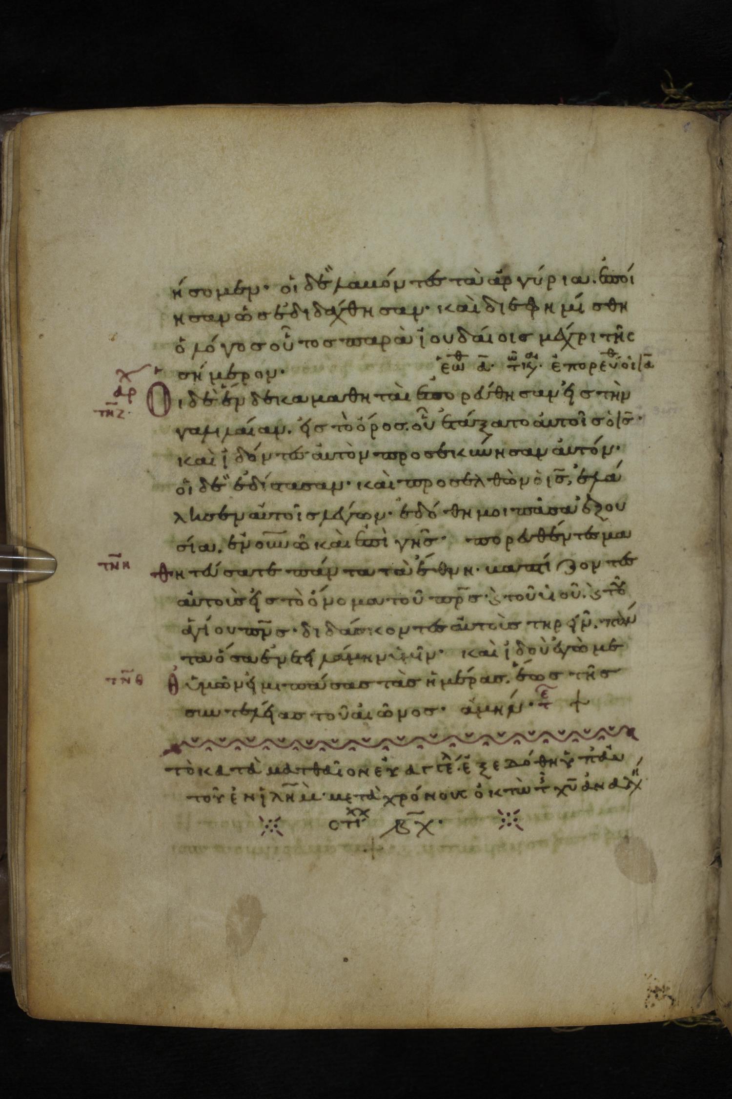 Eleventh or twelfth century minuscule of the Gospels on parchment; 231 leaves, 1 column, 21 lines per column. Images were taken at the National Library of Greece in Athens.