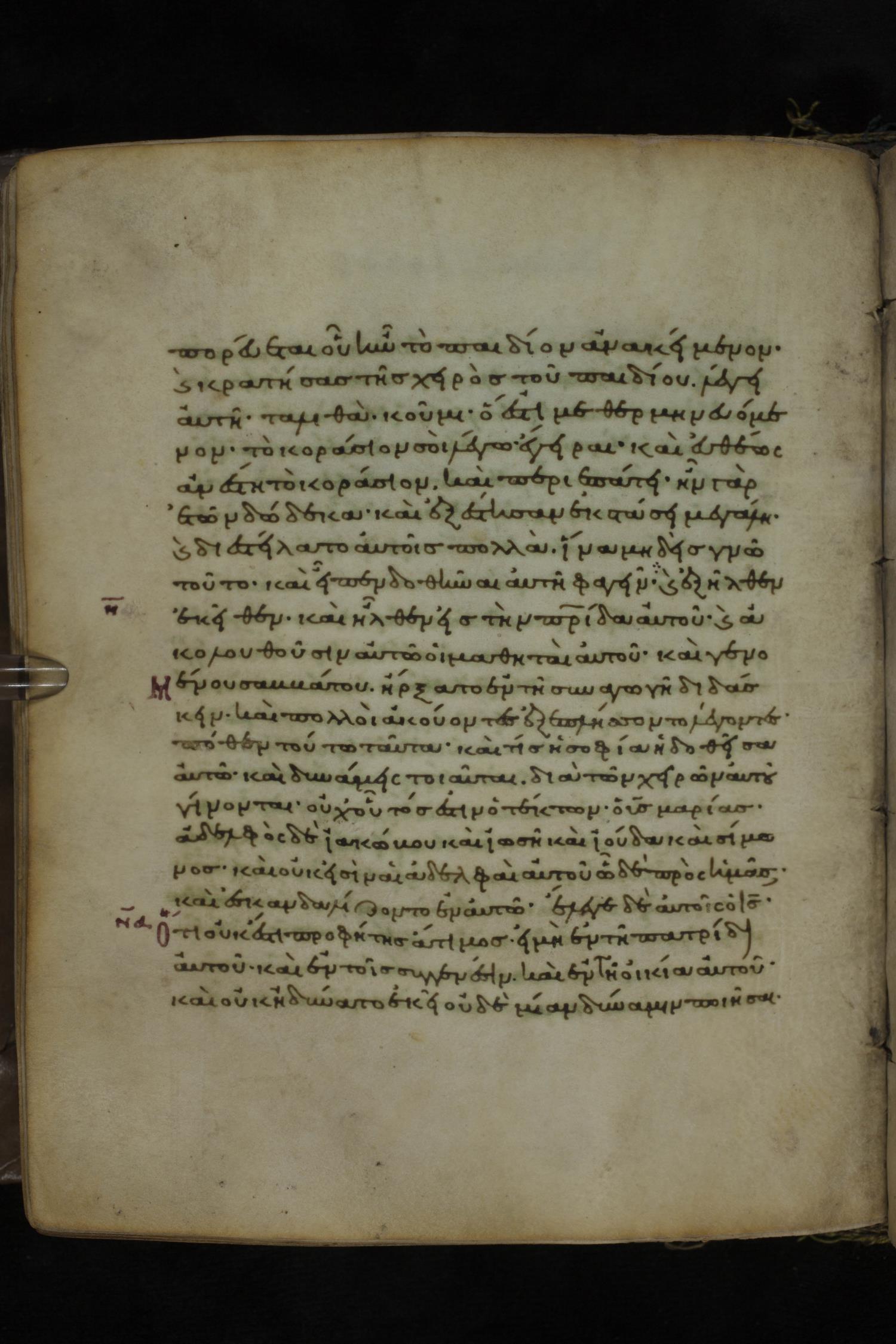 Eleventh or twelfth century minuscule of the Gospels on parchment; 231 leaves, 1 column, 21 lines per column. Images were taken at the National Library of Greece in Athens.