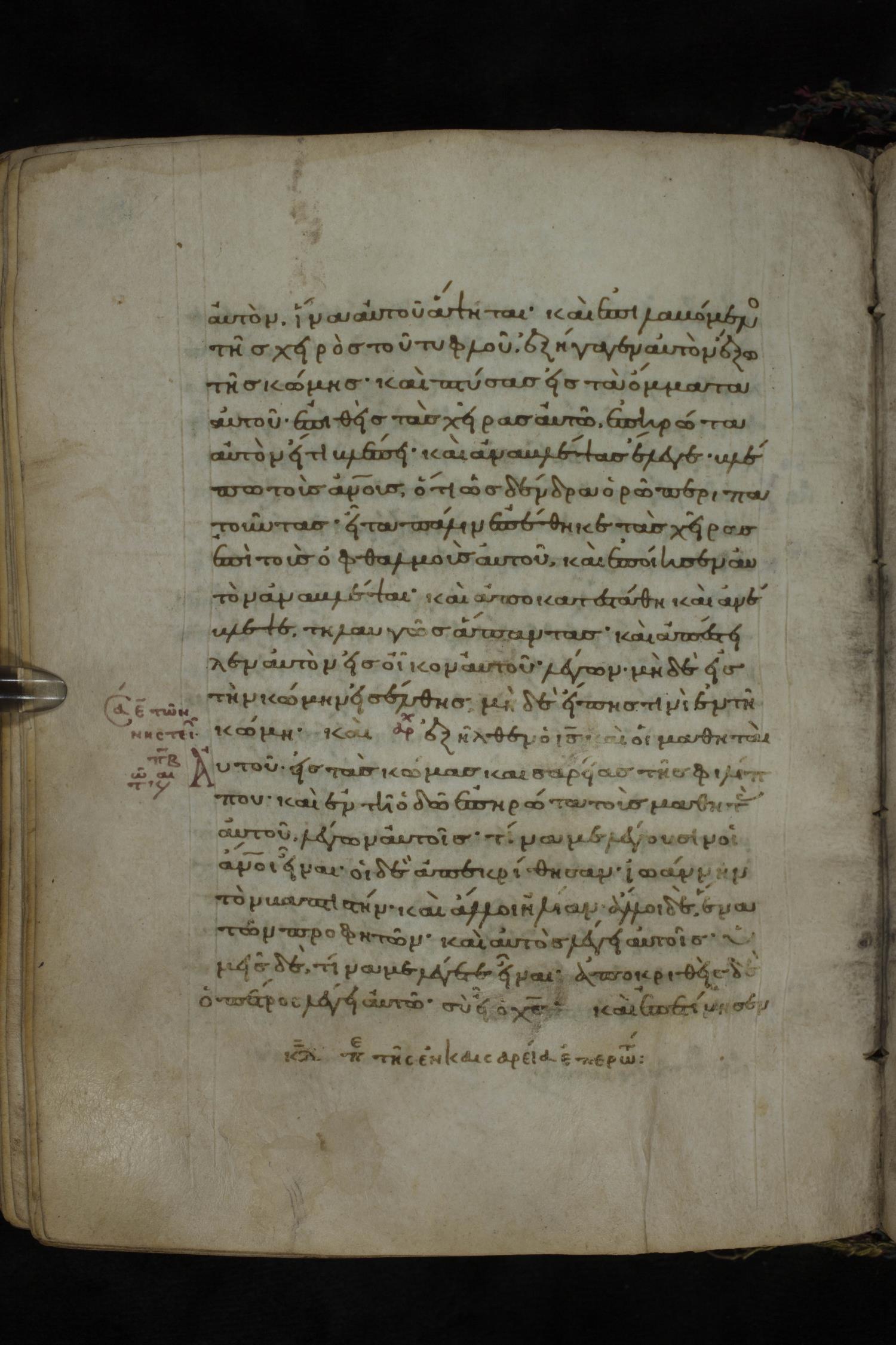 Eleventh or twelfth century minuscule of the Gospels on parchment; 231 leaves, 1 column, 21 lines per column. Images were taken at the National Library of Greece in Athens.