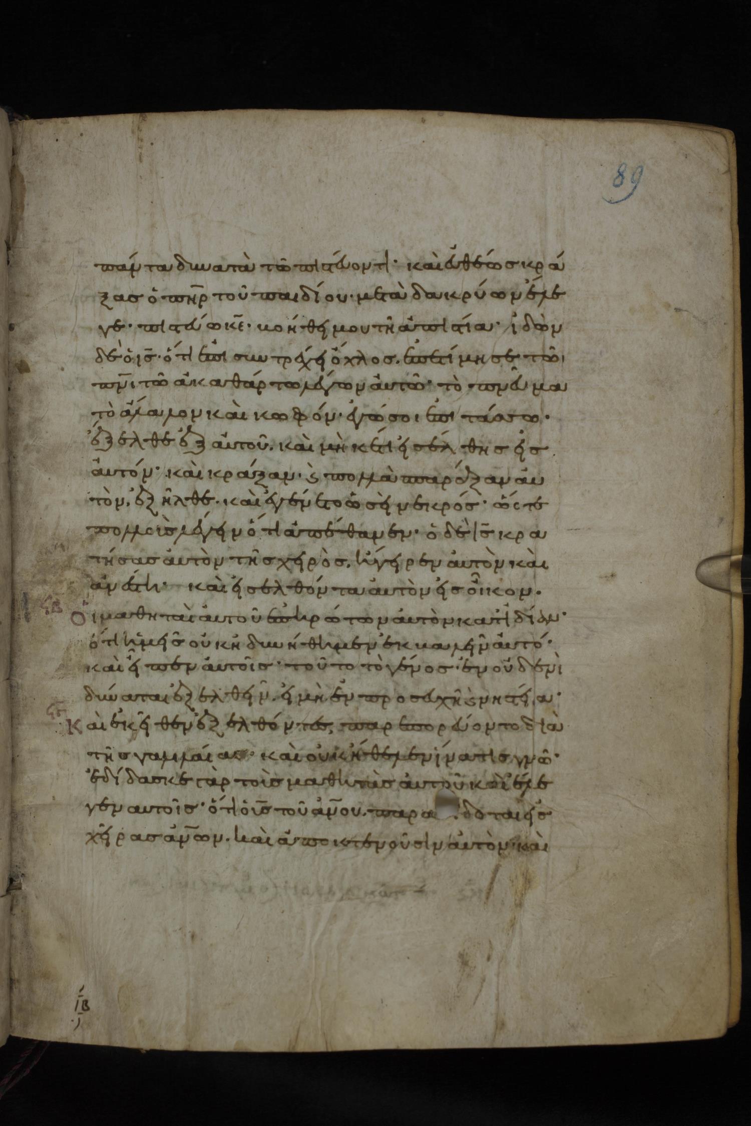 Eleventh or twelfth century minuscule of the Gospels on parchment; 231 leaves, 1 column, 21 lines per column. Images were taken at the National Library of Greece in Athens.