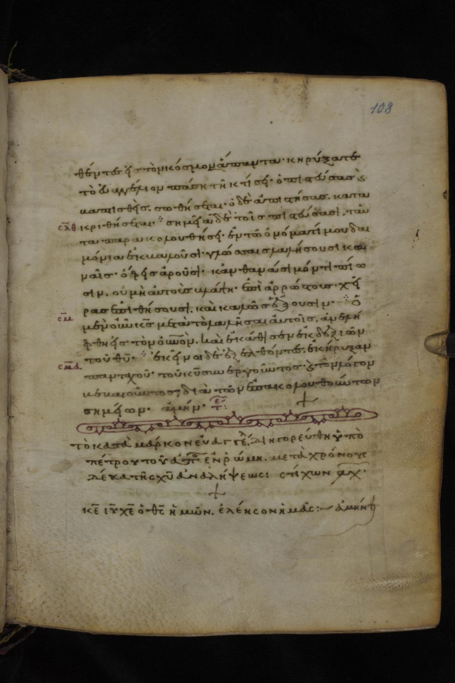 Eleventh or twelfth century minuscule of the Gospels on parchment; 231 leaves, 1 column, 21 lines per column. Images were taken at the National Library of Greece in Athens.