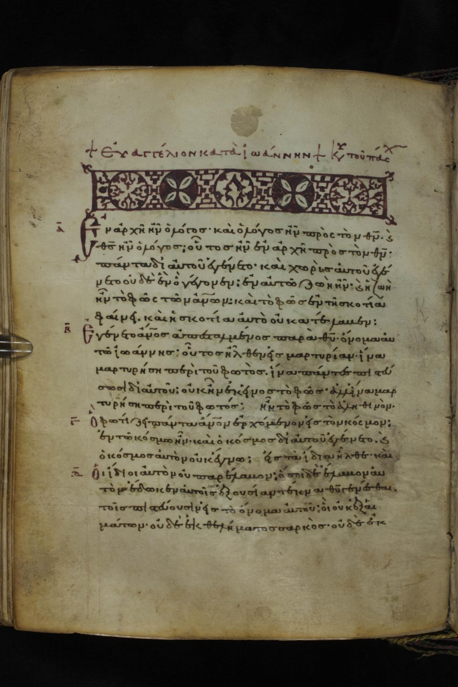 Eleventh or twelfth century minuscule of the Gospels on parchment; 231 leaves, 1 column, 21 lines per column. Images were taken at the National Library of Greece in Athens.
