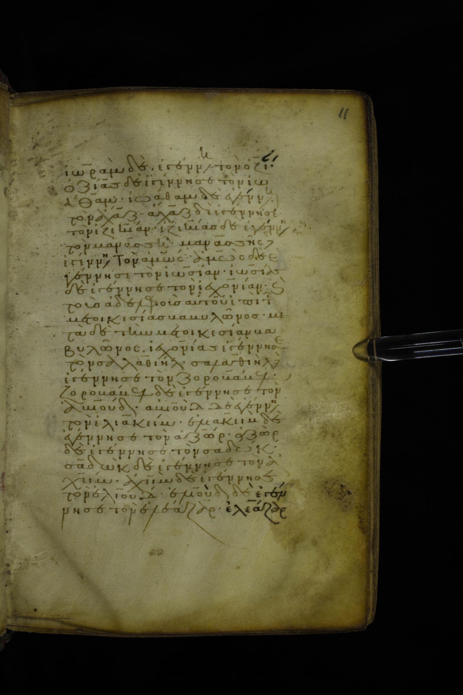 Twelfth century minuscule of the Gospel on parchment; 305 leaves, 1 column, 24 lines per column. Images were taken at the National Library of Greece in Athens.