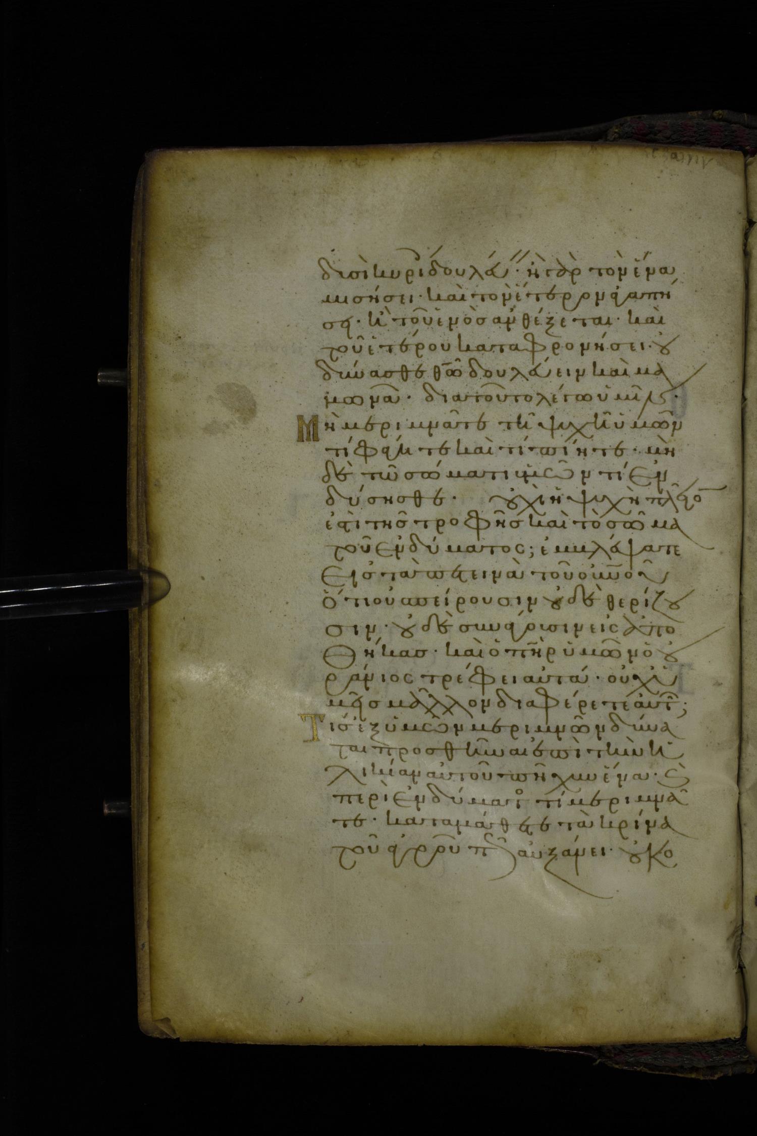 Twelfth century minuscule of the Gospel on parchment; 305 leaves, 1 column, 24 lines per column. Images were taken at the National Library of Greece in Athens.
