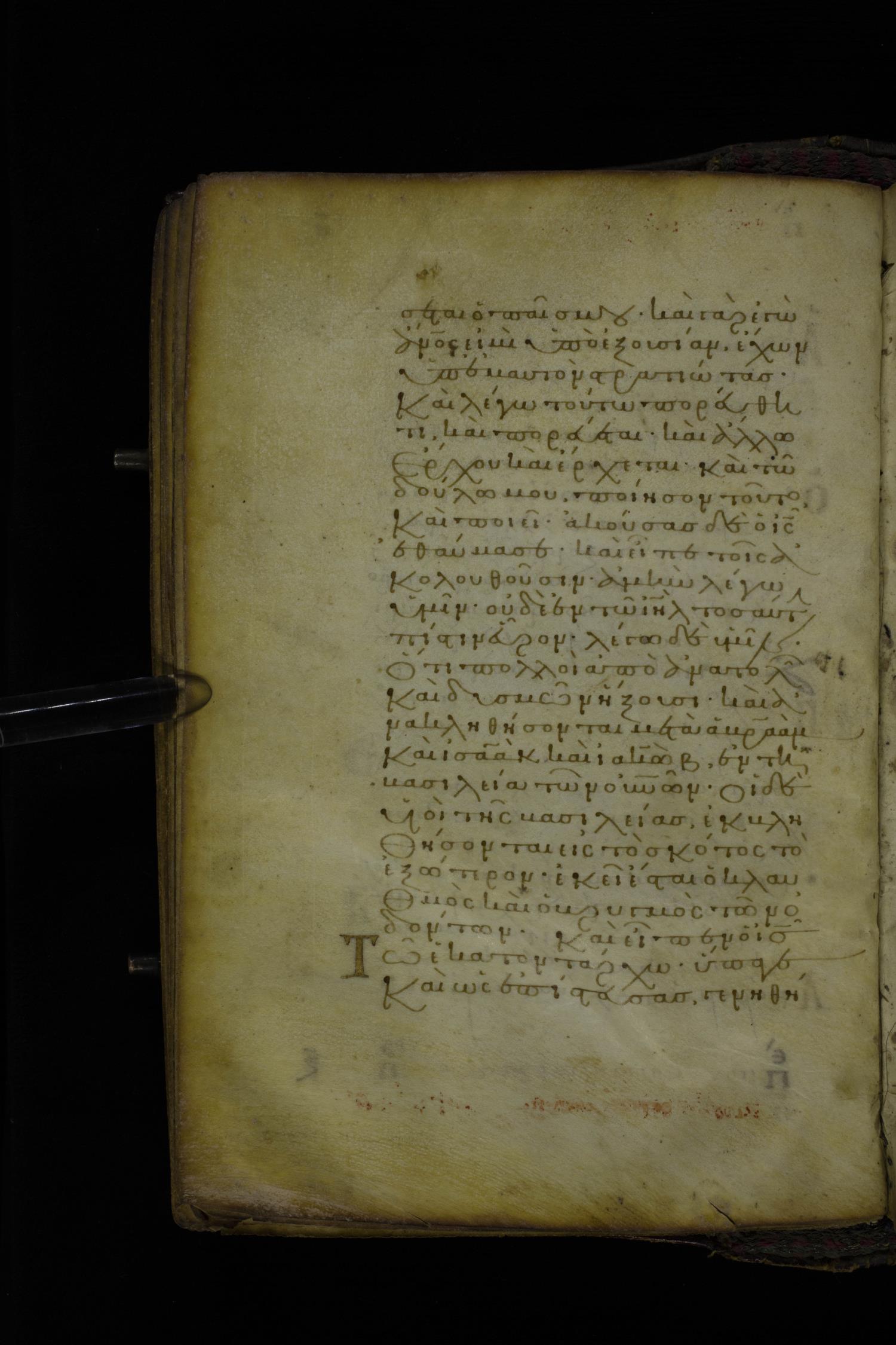 Twelfth century minuscule of the Gospel on parchment; 305 leaves, 1 column, 24 lines per column. Images were taken at the National Library of Greece in Athens.