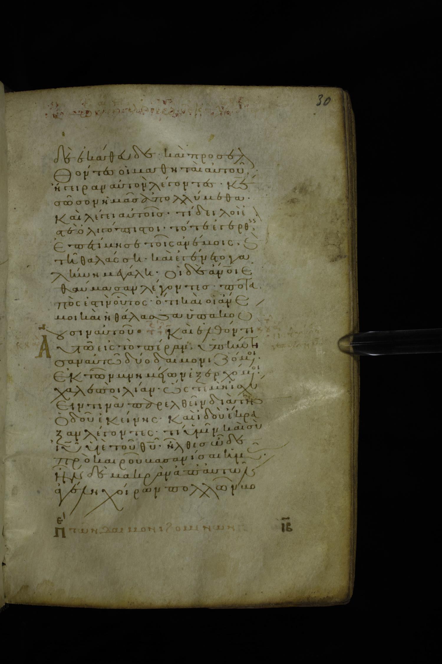 Twelfth century minuscule of the Gospel on parchment; 305 leaves, 1 column, 24 lines per column. Images were taken at the National Library of Greece in Athens.