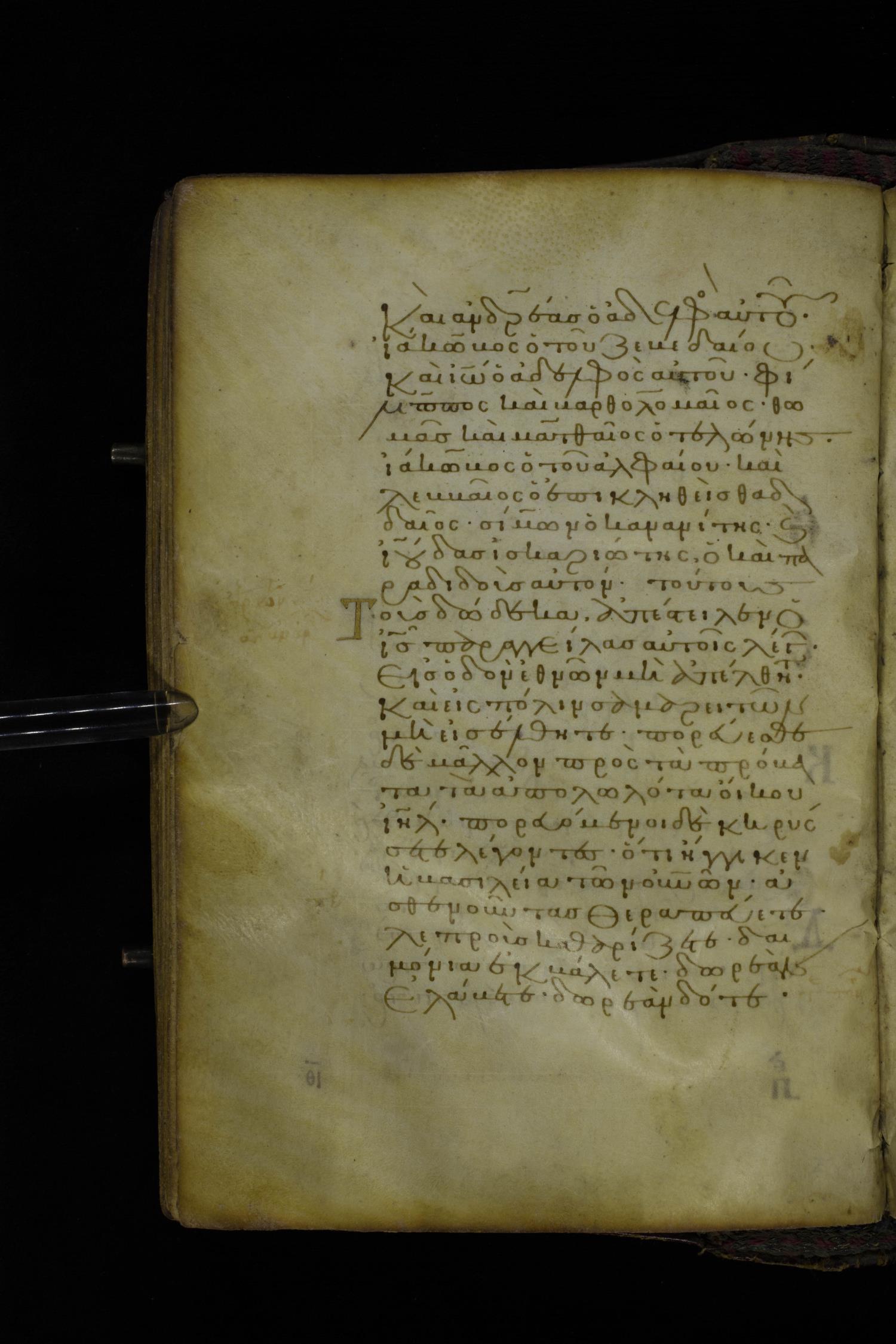 Twelfth century minuscule of the Gospel on parchment; 305 leaves, 1 column, 24 lines per column. Images were taken at the National Library of Greece in Athens.