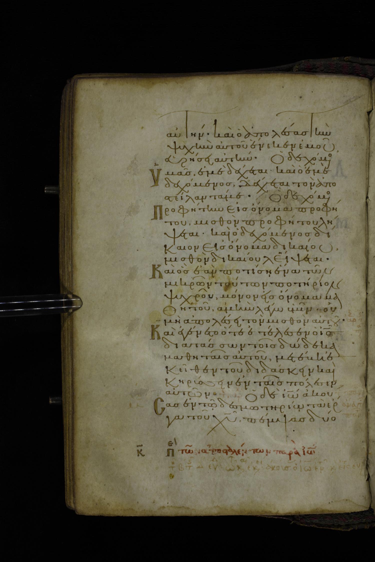 Twelfth century minuscule of the Gospel on parchment; 305 leaves, 1 column, 24 lines per column. Images were taken at the National Library of Greece in Athens.