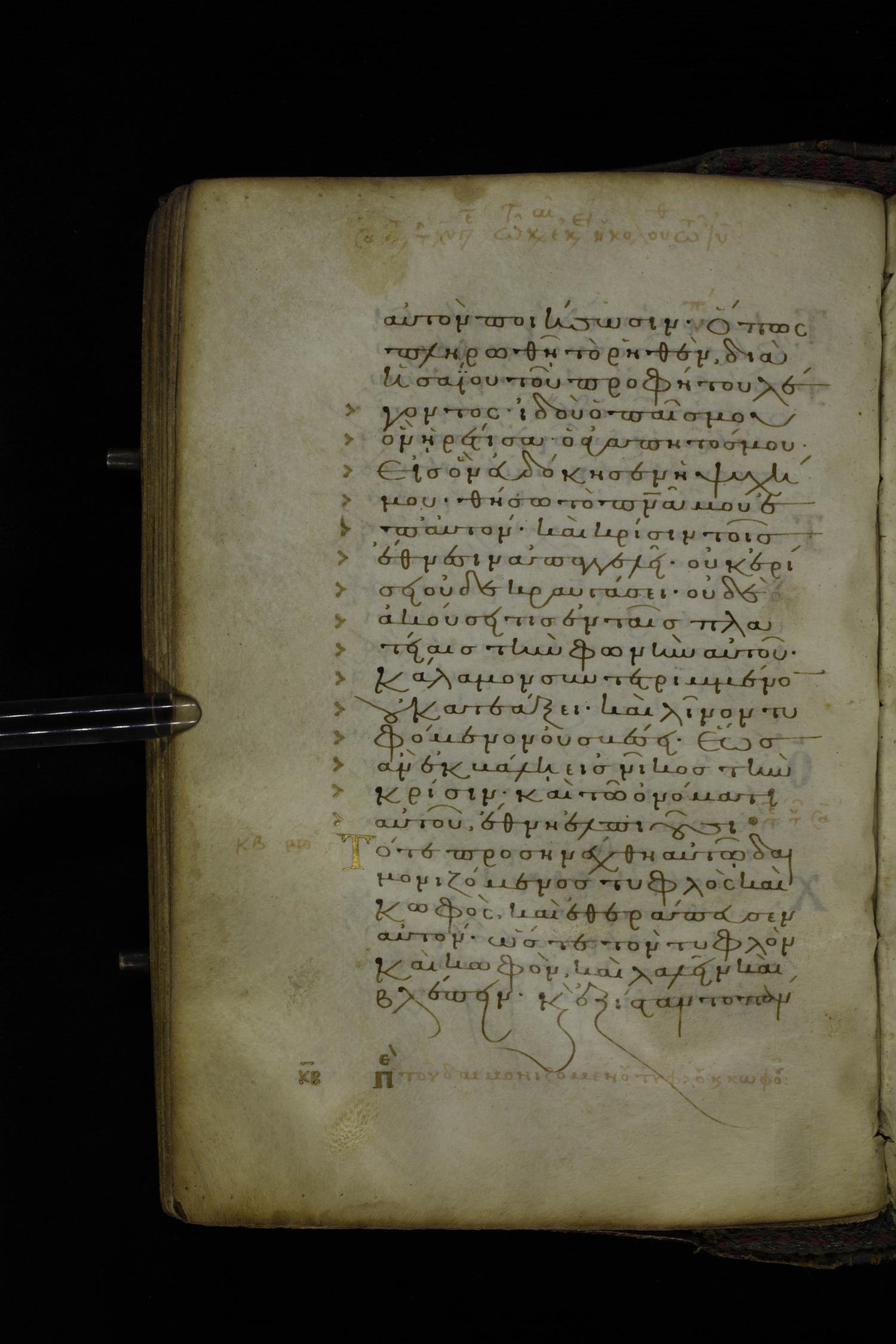 Twelfth century minuscule of the Gospel on parchment; 305 leaves, 1 column, 24 lines per column. Images were taken at the National Library of Greece in Athens.