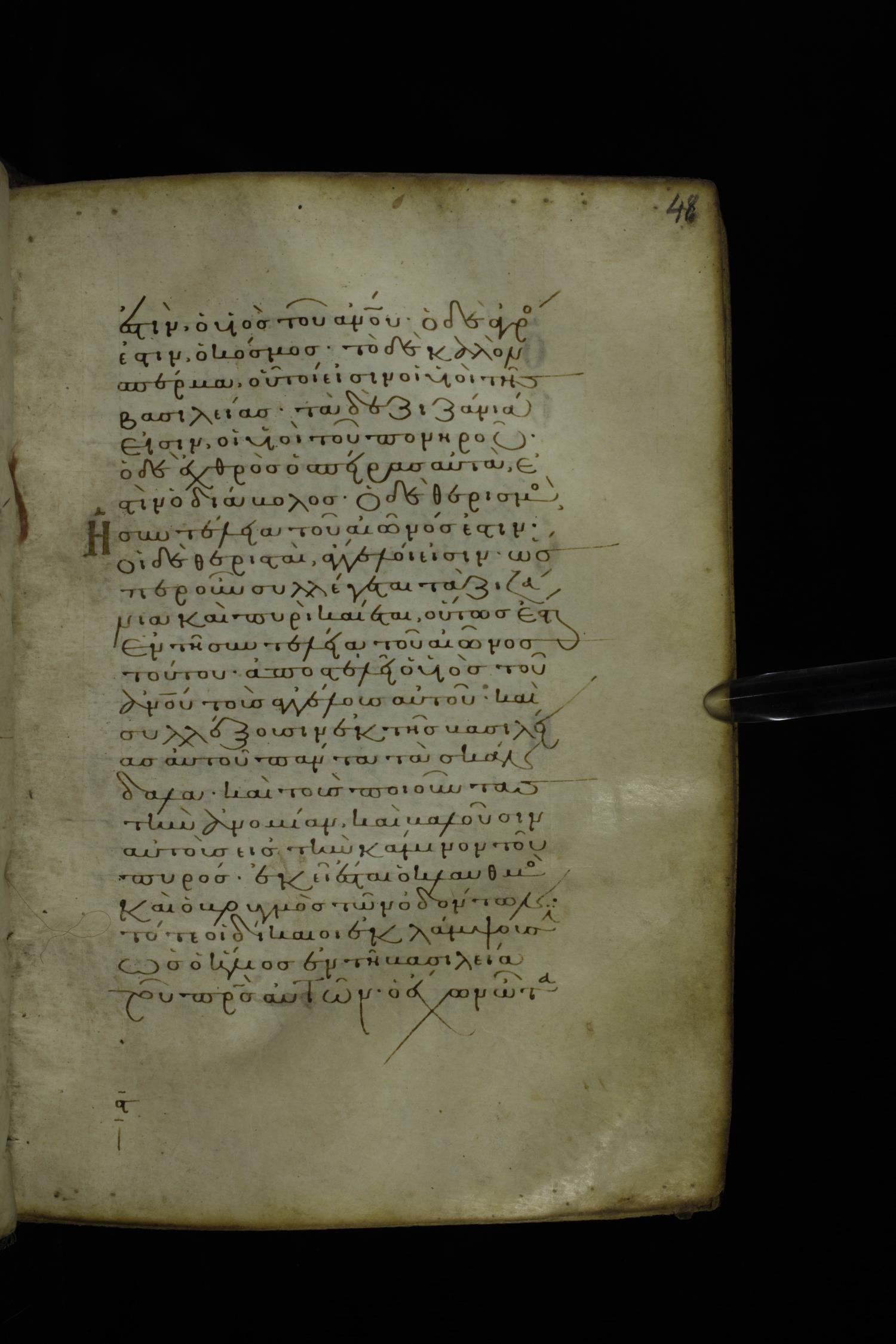Twelfth century minuscule of the Gospel on parchment; 305 leaves, 1 column, 24 lines per column. Images were taken at the National Library of Greece in Athens.