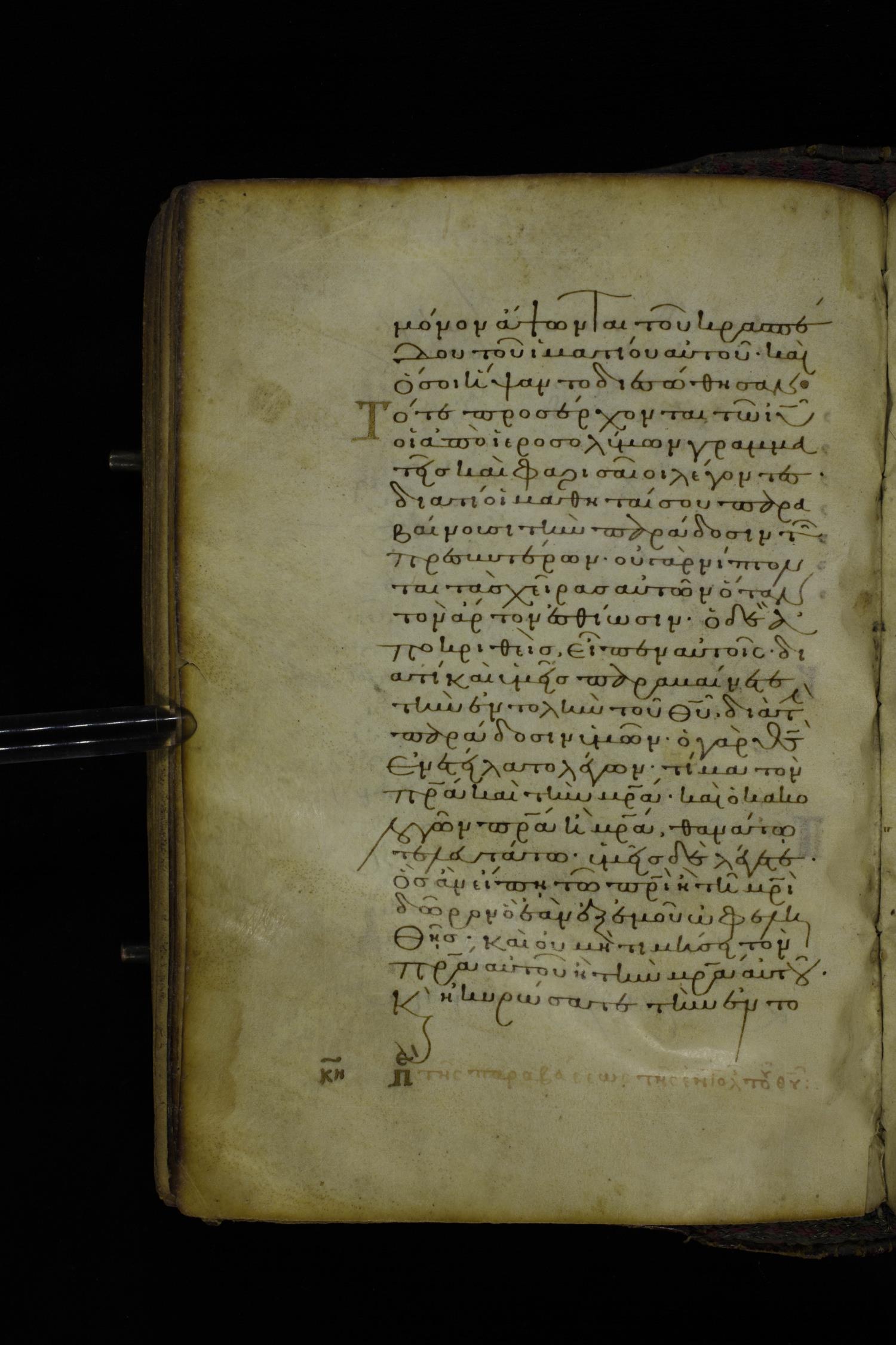 Twelfth century minuscule of the Gospel on parchment; 305 leaves, 1 column, 24 lines per column. Images were taken at the National Library of Greece in Athens.