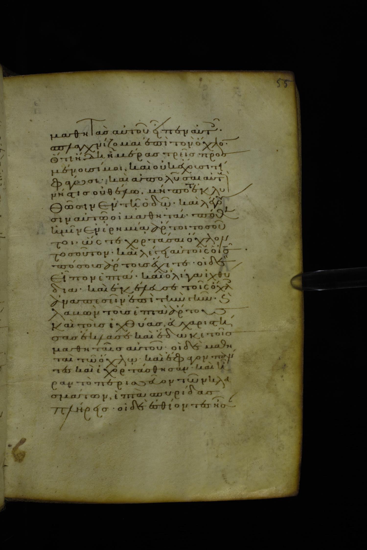 Twelfth century minuscule of the Gospel on parchment; 305 leaves, 1 column, 24 lines per column. Images were taken at the National Library of Greece in Athens.
